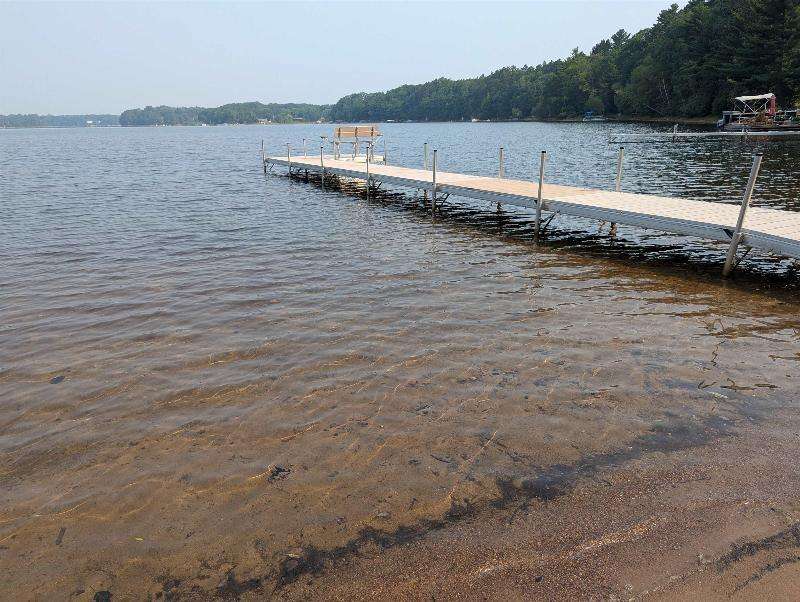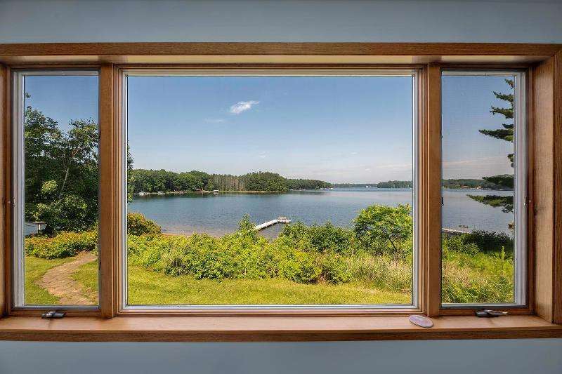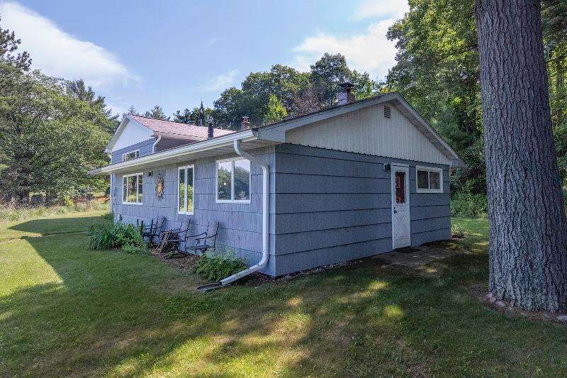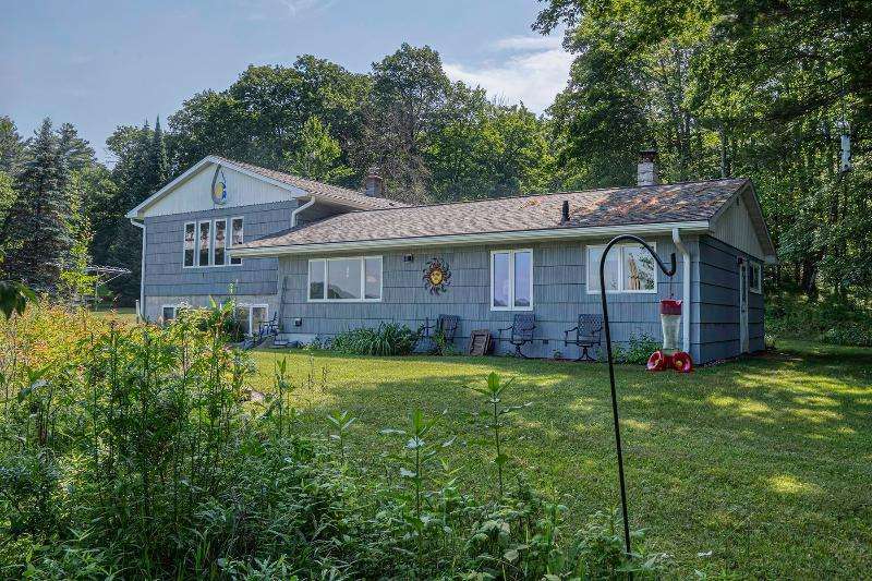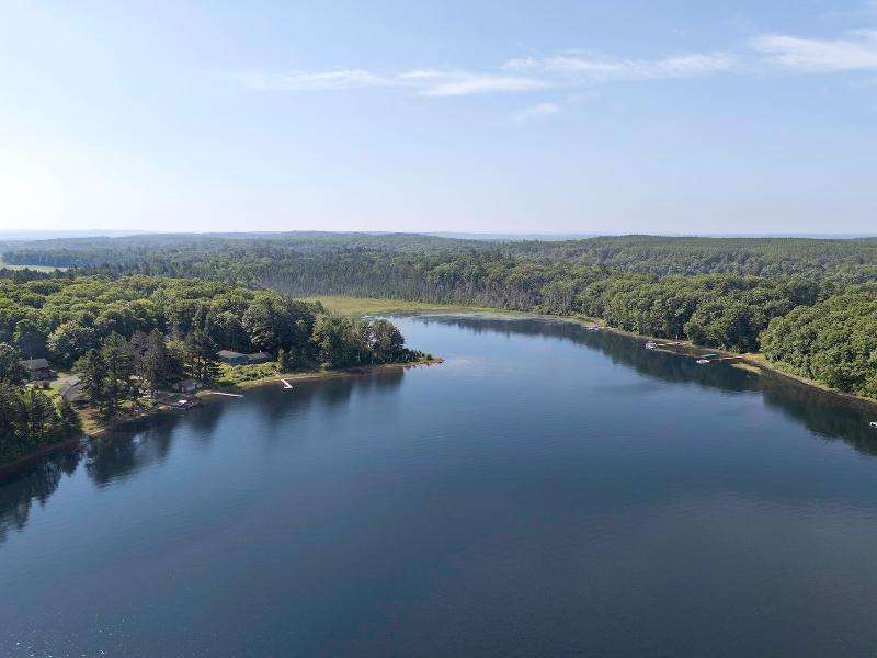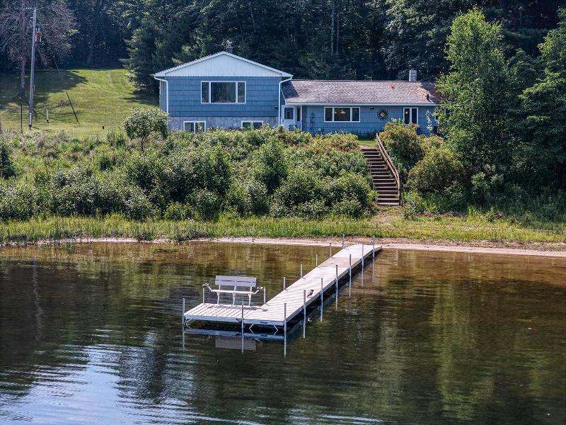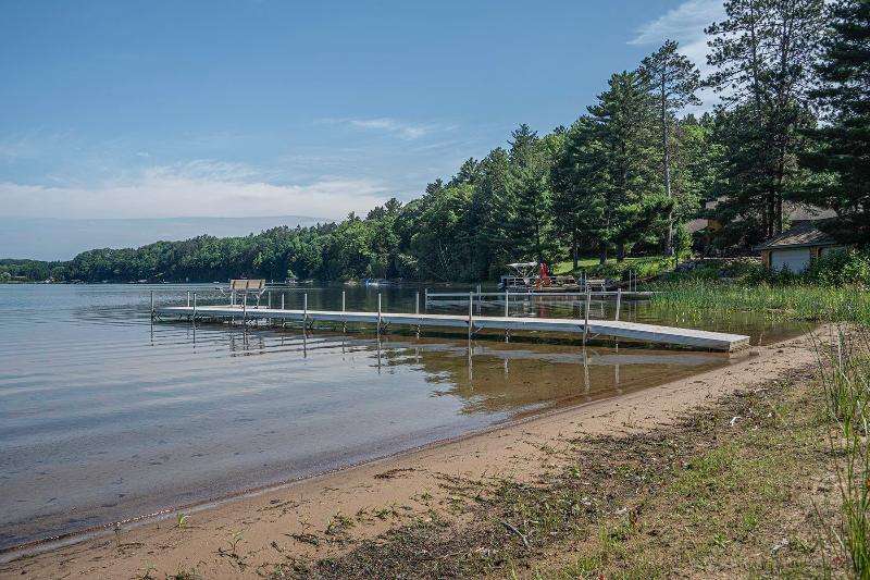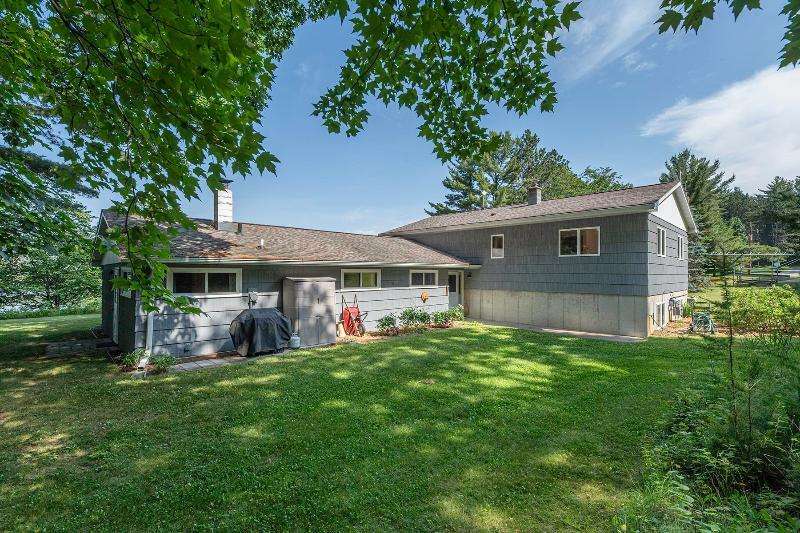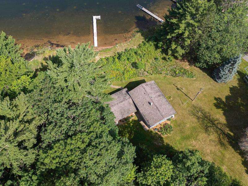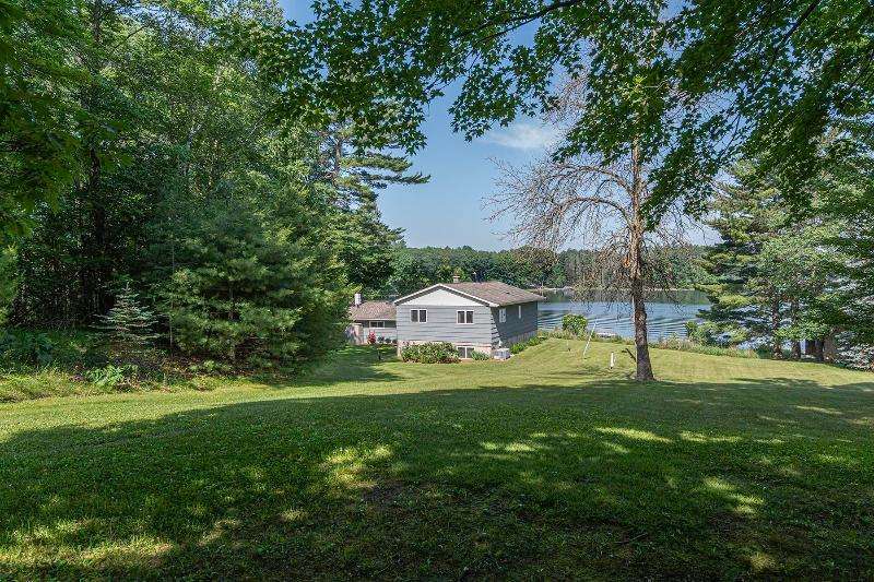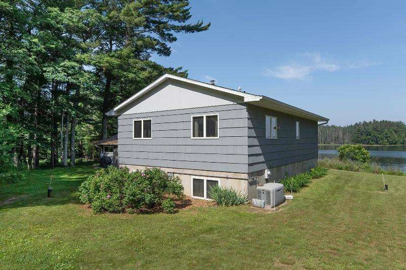 One of a kind property! 21 wooded acres with 1200+/- feet of frontage on premier Squash lake, a 392 acre, 74 ft deep clear water lake just west of Rhinelander. Sand beach, gradual slope to the water, western exposure and an exquisite view of the lake. This 4 bed, 3 bath home has 2 primary bedrooms with private bathrooms, a spacious living room with large lake side windows, and 2 garages. The land is a mix of impressive hardwoods and pine, with a small meadow and a unique wetlands . Squash Lake has clarity readings of up to 23 feet and a fishery that includes bass, panfish, walleye, northern and trout. You rarely find this much land on a quality lake.