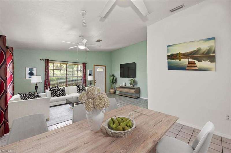 Welcome to 509 Capitol St, a beautifully updated 3-bedroom, 2-bath home located in the heart of North Fort Myers. This move-in ready property features a brand-new roof, upgraded electrical panel, and updated plumbing-all completed in 2024, offering peace of mind for years to come. The interior has been freshly painted and features professionally cleaned carpets, creating a clean and inviting living space. The open-concept layout includes vaulted ceilings, a spacious living and dining area, a cozy breakfast nook, and a practical kitchen with appliances included. For your convenience, the home has interior laundry hookups, attic access with pull-down stairs, and central air and heating. The backyard offers a private space perfect for relaxing, entertaining, or pets. Best of all, the home is not in a flood zone, so no flood insurance is required. To help you visualize the possibilities, the home has been virtually staged to showcase its full potential. Conveniently located near shopping, dining, and schools, this updated home is perfect for first-time buyers, investors, or anyone seeking a low-maintenance Florida lifestyle.
