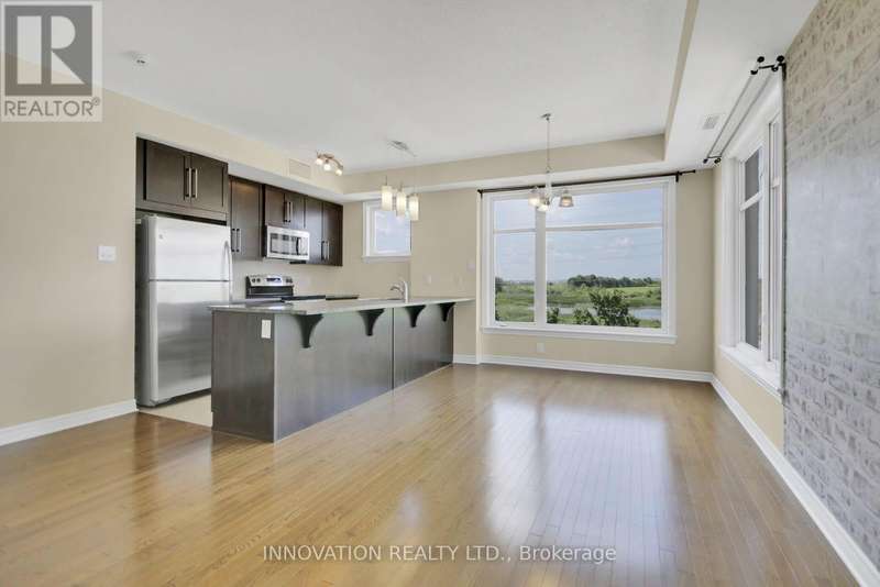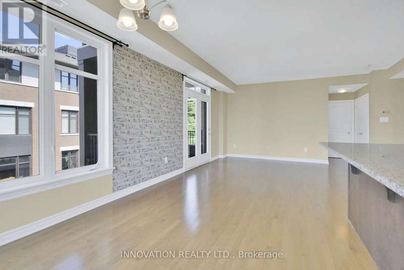 Welcome to 180 Guelph Private Unit #201. Located in Kanata Lakes/Heritage Hills this property has 2 bedrooms, 2 bathrooms + a den. The layout, light and view will not disappoint! Featuring a sprawling living/dining/kitchen area with the best views on the street. Hardwood floors throughout. Contemporary kitchen with 5 stainless steel appliances. Large island and breakfast bar. Breezy outdoor space with covered balcony. Spacious primary bedroom with a superb view, and a 3pc ensuite bathroom. The 2nd bedroom is directly across the hall from another 4pc main bathroom. Den is full of possibilities: office, rec room, craft room. In-unit laundry. Great amenities; club house with kitchen, work out area. Underground parking spot and storage locker. 180 Guelph Private features an elevator that takes you right upstairs. (id:6509)