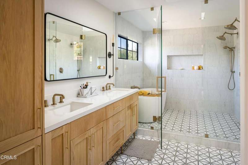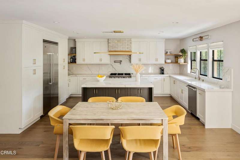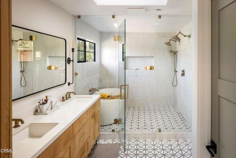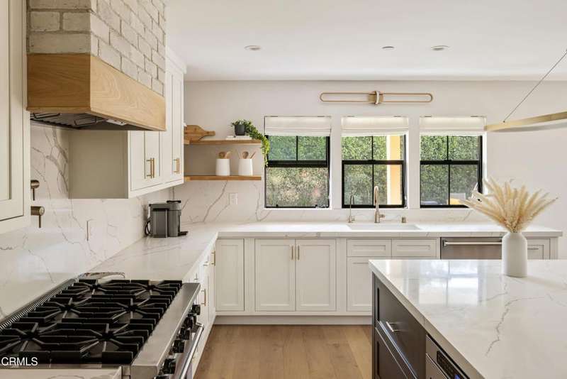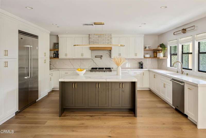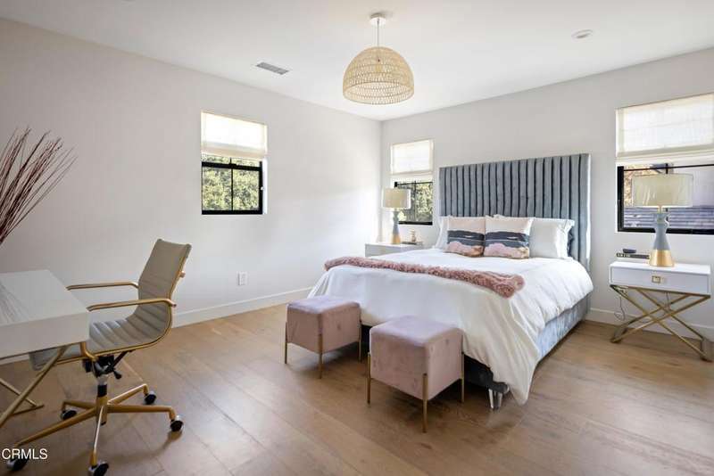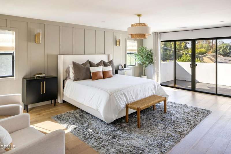 Immaculate, modern, and undeniably elegant, this East Pasadena residence in Chapman Woods represents the pinnacle of contemporary luxury. Originally built in 1948 and fully reimagined in 2021, the home masterfully blends timeless character with sophisticated design, situated on an 8917 square foot, flat lot. A striking mix of warm hues and brick on the facade sets the tone for the 3,327-square-foot interior, where refined finishes and thoughtful craftsmanship define every space. The entry living area centers around a dramatic fireplace, while floor-to-ceiling glass doors reveal a versatile office or gym. Designed for effortless entertaining, the open-concept great room and chef's kitchen feature custom cabinetry, quartz countertops and backsplash, premium stainless steel appliances, and a generous island for gathering. Wide-plank hardwood floors, designer tile, and curated wallpaper accents add texture and warmth throughout. The home offers 4 bedrooms and 5 bathrooms, including a main-floor guest suite with sliding doors to a covered patio and the landscaped yard. Upstairs, a secondary living area complements three en-suite bedrooms. The primary suite is a serene retreat with its own balcony, walk-in closets, and a spa-inspired bath featuring a soaking tub and glass-enclosed shower. A two-car garage and motor court provide ample parking, while the location offers easy access to freeways, shopping, dining, and parks. Sophisticated yet welcoming, this home delivers an exceptional lifestyle in one of East Pasadena's most sought-after neighborhoods.