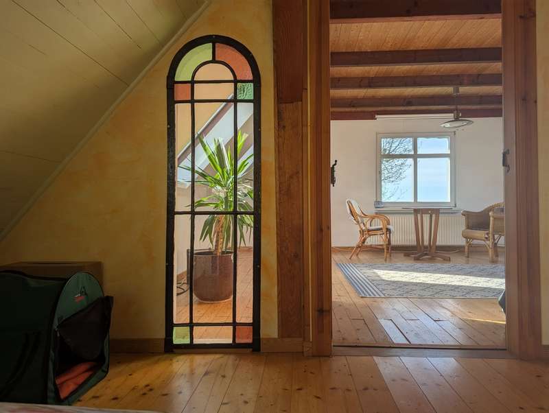 This well-kept country house offers generous living space, lots of charm and numerous amenities in an idyllic location on the edge of a field. Built around 1947, the house stands on a spacious plot of around 2,157 m². It has a living space of around 220 m² and was built using a solid construction method with fieldstone foundations and double-shell brickwork. Extensive modernization work was carried out between 2016 and 2022, including the renewal of the sewage pipes, the bathroom on the first floor, the heating boiler (oil), the electrics, the cellar and the installation of a fully biological small sewage treatment plant. As soon as you enter the house, you can feel the charm of traditional construction. Many rooms with floorboards, exposed wooden beams and lovingly preserved details create a homely and inviting atmosphere. On the first floor there are five rooms, including a connecting room, a kitchen, two bathrooms, a spacious hallway and a bright veranda, which was added in 2000 on the south-east side and offers a beautiful view of the garden. On the top floor there is a gallery, a shower room with window and three further rooms - including a passageway room - which are ideal for use as a bedroom, office or guest room. Particularly noteworthy are the two wood-burning stoves (one on the ground floor and one on the upper floor), which provide cozy warmth in the cold season. In addition, a kitchen witch in the kitchen not only creates a nostalgic ambience, but also offers practical cooking facilities. Three bathrooms - two on the first floor and one on the upper floor - provide the expected comfort. The central heating ensures that all rooms are pleasantly heated. The area with a partial basement serves as a boiler room. A fiber optic connection ensures a modern internet supply. The property is divided into various garden areas with great attention to detail and offers privacy and privacy through clever planting. Two garages and other solidly constructed outbuildings offer ample space for vehicles, storage areas and workshop use. Another highlight is the separate sauna house on the property. It has not been used recently and shows slight signs of wear due to its age, but is in good working order. With a little bit of craftsmanship and a bit of visual freshening up, a cozy retreat for relaxation can be created here. The location on the edge of the field offers tranquillity, closeness to nature and wonderful views of the surrounding countryside. At the same time, there are good transport links so that all important facilities are within easy reach.