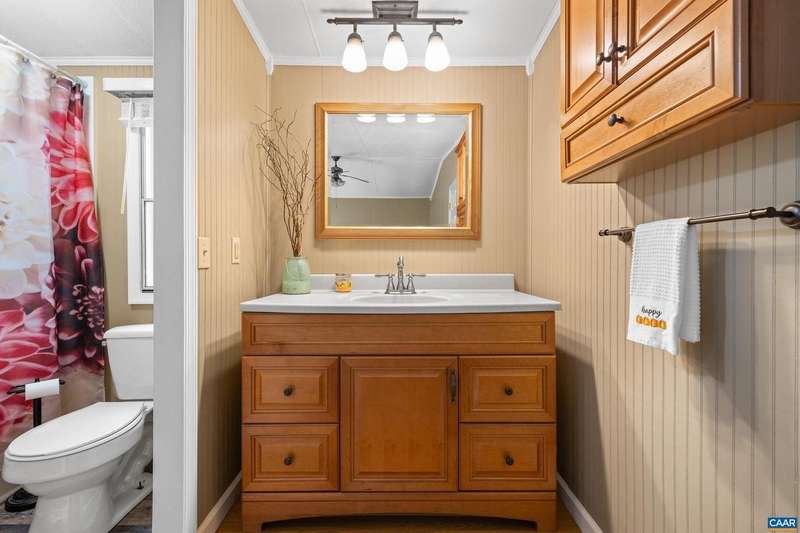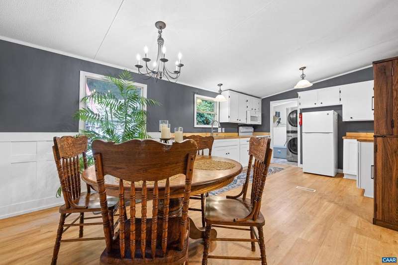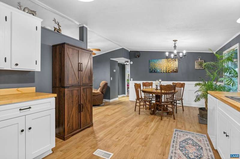 Your Private Oasis awaits you! Welcome to the country and enjoy 7 acres of peace and quiet on your mountainside retreat while mere minutes to the famed 151 corridor, Blue Toad Orchard, Devils Backbone, Wintergreen, Blue Ridge Pkwy, and so much more! Lush vegetation surrounds this nicely appointed MOVE-IN READY one-level rancher with new flooring, new cabinets, newer appliances, fresh paint, and lovely lighting fixtures! Enjoy a sip of coffee under a light rain on your covered front porch while listening to the birds chirp for joy! Fire up the grill on your oversized rear deck, then enjoy conversations with family and friends over the crackling of a fire on a cool evening at your fire pit! Take in the mountain views from your hilltop terrace, and enjoy the stargazing on a clear night! Plenty of storage awaits your outdoor yard equipment in your shed/workshop, which is equipped with electricity. The dogs even have their own fenced-in space to run and play! You're always connected with fiber optic internet, which makes working from home, streaming movies, and gaming, a cinch! Create your nature walking trails and really enjoy the beauty of indoor and outdoor living, mixed with the peace and quiet that nature has to offer!,Wood Cabinets,Wood Counter