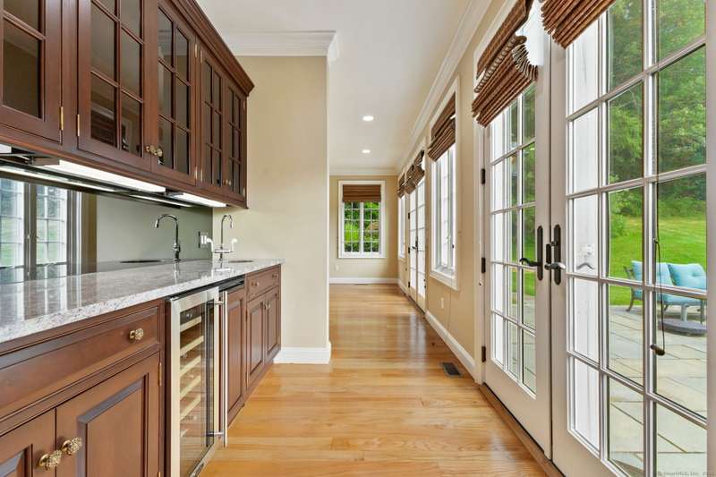 *Quintessential New England Retreat in Redding, CT* Welcome to 2 Longwood Drive, an exquisite property providing an idyllic lifestyle amidst natural beauty. This custom-built colonial residence has been meticulously cared for by its sole owner and features 6,259 sq. ft. of open concept living on 2.72 private, landscaped acres, offering the perfect blend of timeless charm and modern luxury. A dramatic entryway with a stunning covered stone patio and central foyer welcomes you into the expansive first-level with 9-foot ceilings, hardwood floors throughout, and light-filled living spaces designed for both relaxation and entertaining. The heart of the home is the updated gourmet kitchen, featuring a Sub-Zero oversized refrigerator/freezer, Thermidor double ovens, a 6-burner Wolf gas cooktop, custom cabinetry, a large center island, and a butler's pantry. A wet bar with a wine refrigerator, ice maker, and sink complements the space, while a cozy sunlit breakfast nook overlooks the serene