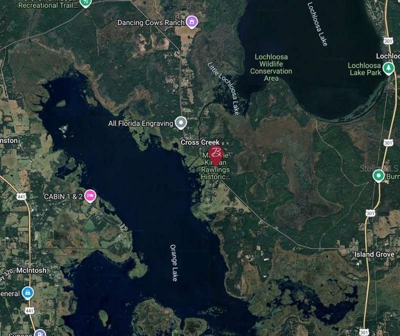 Discover the charm of “Old Florida” living with this unique opportunity in historic Cross Creek. This 3-bedroom, 2-bath home sits on a double lot along a canal leading to Orange Lake, surrounded by majestic oaks, cypress, and draping Spanish moss swaying in the lake breeze. Located just off County Road 325, next to Marjorie Kinnan Rawlings State Park, you’ll enjoy easy access to the park’s boat ramp, picnic pavilions, and playground. Nature lovers will delight in the abundant wildlife—hawks, ospreys, and eagles frequently soar overhead—and anglers will appreciate the excellent fishing for largemouth bass, bluegill, and redear sunfish on the beautiful lake. There’s plenty of space to park your boat or RV, or even add another structure if desired. The property is less than a mile from the famous Yearling Restaurant and less than a half hour drive to Gainesville or Ocala, offering both seclusion and convenience. This home is ready for someone with vision—bring your renovation skills and restore this lakeside retreat to its former glory. Whether you’re looking to establish a full-time residence, weekend getaway, or seasonal escape, the potential here is endless.