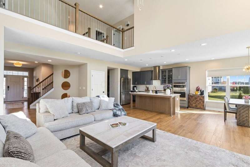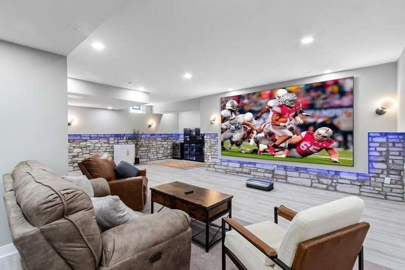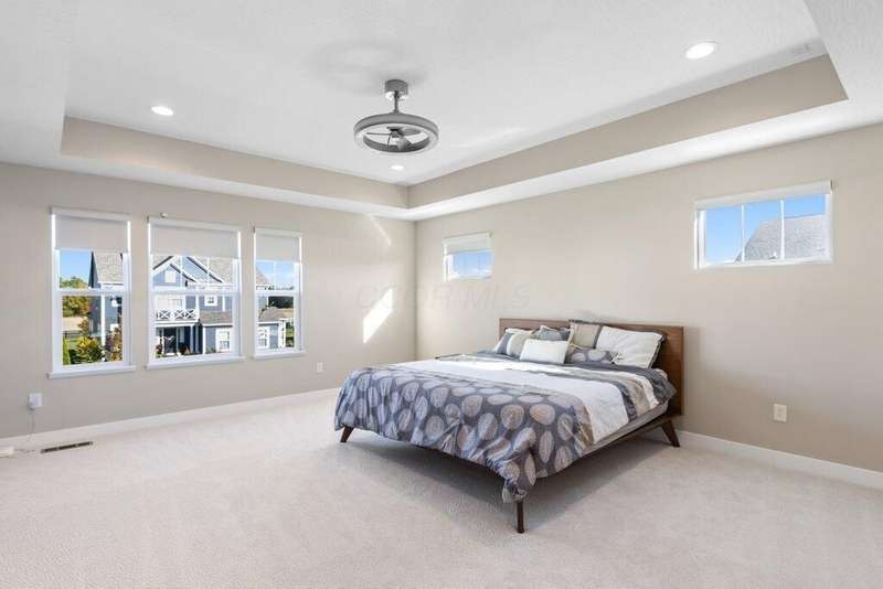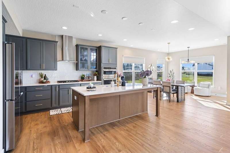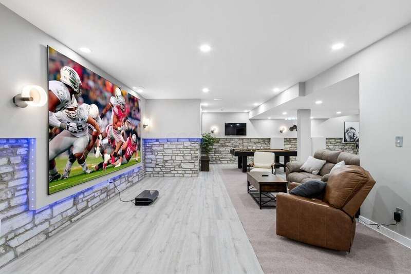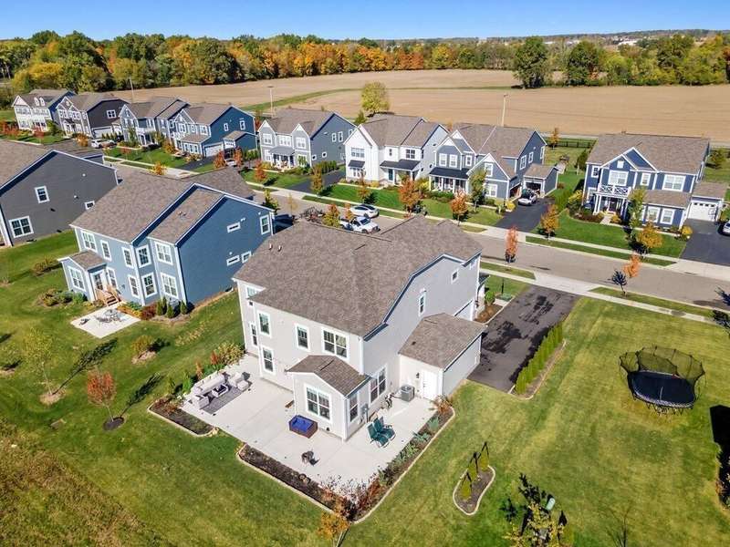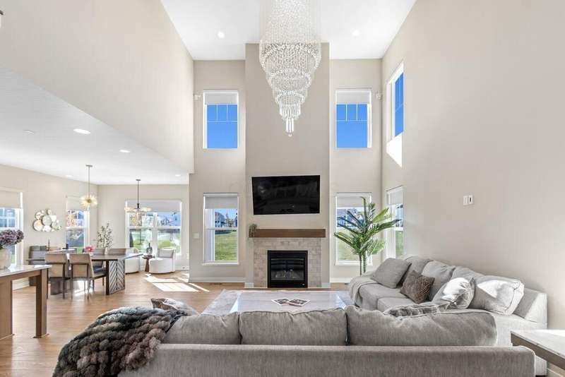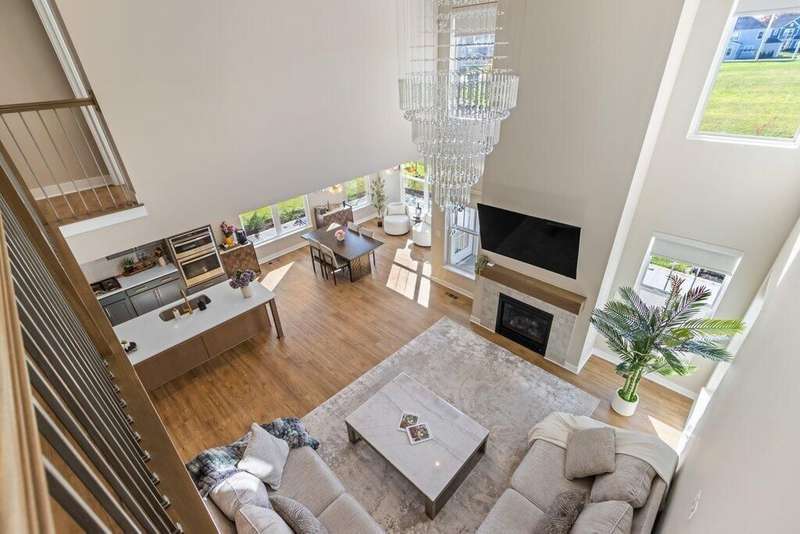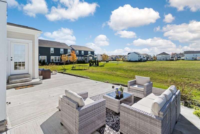 This inviting home combines luxury, comfort and functionality at every turn, featuring 5 bedrooms 5.5 baths and over 4,000 Sq Ft of beautifully designed living space on a premium lot backing to green space. The open floor plan is filled with natural light and features top-tier finishes throughout including designer cabintets. exceptional flooring and stunning modern lighting. The chef's kitchen boasts high end finishes, a walk in pantry and spacious eat- in sunroom area, open to the magnificent Great Room and 1,000 ft outdoor patio - ideal for entertaining. The first floor also features a living room /office flex space, and a guest bedroom suite, offering privacy for guests and extended family. The upper level boasts 4 spacious bedrooms-each with its own private bath and closet. The grand primary suite includes a spa-like bath with steam shower and dream closet. The FINISHED LOWER LEVEL is AMAZING - spacious, finished with real stone accents, upgraded lighting, HUGE media screen and projector, and a half bath - (roughed in for a full bath). The space is open and offers areas for your fitness, relaxation, gaming and entertaining enjoyment. Upgrades include 3 car side load garage, dual hot water heaters, water filter and softener, motorized window coverings, laundry options on upper and lower levels- nearly every upgrade option offered by the builder. See upgrade list- this exceptional home, situated on a premium lot, is a rare find that has it all and checks every box.