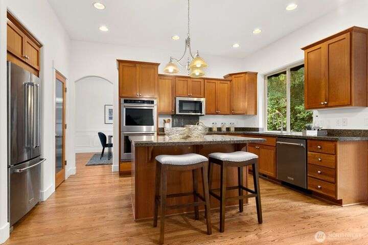 Welcome to Rosedale Ridge, where sophistication and comfort come together in a private gated enclave surrounded by natural beauty. This immaculate, move-in-ready home offers 4 bedrooms, 3 baths, and a 3-car garage. The dreamy primary suite (with sitting area and gas fireplace) provides a serene retreat, while a convenient main-level bedroom and bath are perfect for guests. The chef's kitchen impresses with granite counters, a large island, double ovens, hardwood floors, and brand-new stainless appliances. Designed for fabulous entertaining, the home flows seamlessly from elegant living spaces to a park-like backyard with lush landscaping, expansive patio, and a cozy fire pit for gatherings day or night. Visit soon! This is a gem.