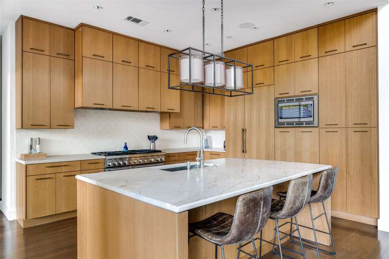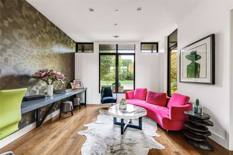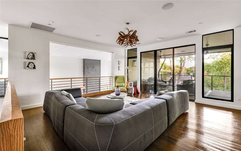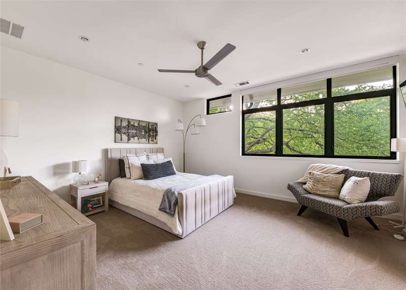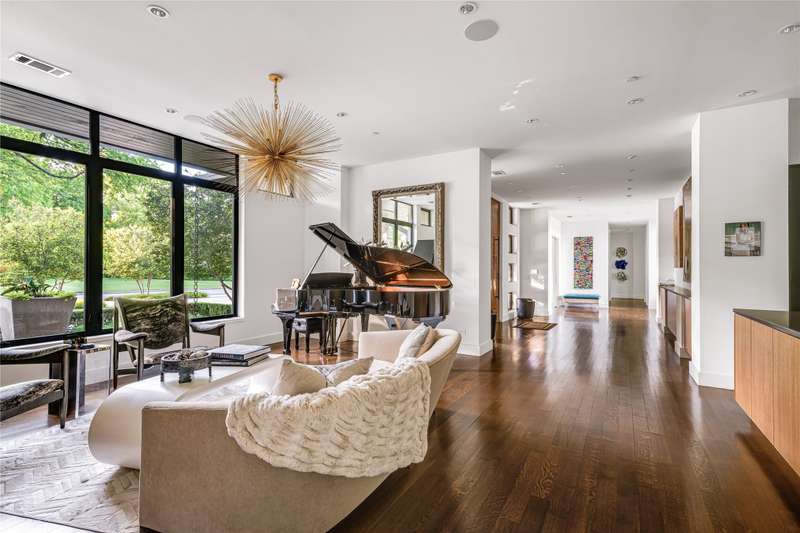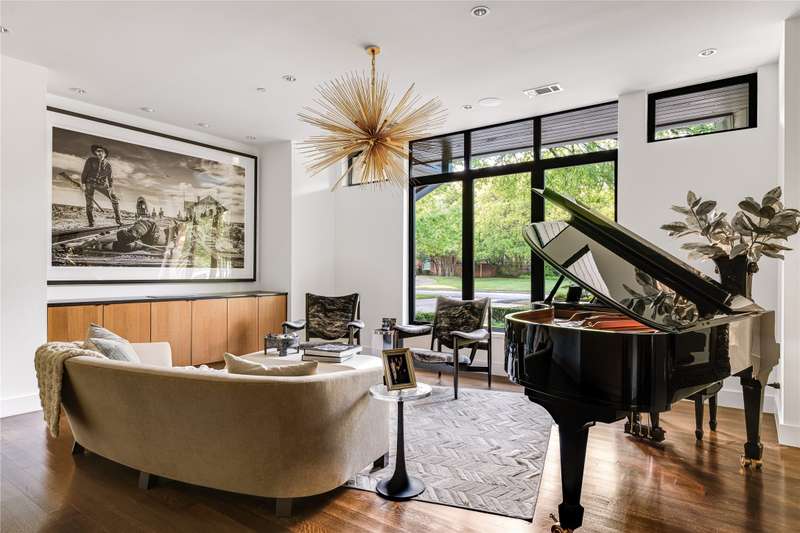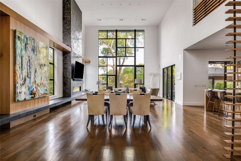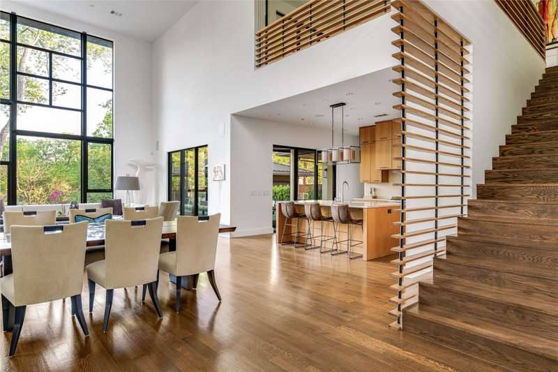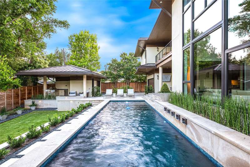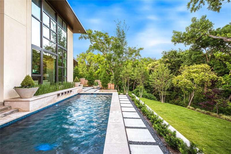 Featured on the AIA Home Tour in 2020, this architect-designed contemporary home combines the finest in design, craftsmanship, and setting. Located in the desirable Hockaday Neighborhood, and designed and built by acclaimed architect Doug Guiling, AIA, and completed in 2018, this architectural masterpiece sits gracefully on a lush creek lot along iconic Strait Lane. This exceptional home was thoughtfully designed to capture the serenity and beauty of its natural surroundings, with expansive walls of glass and custom Mondrian-style windows that flood the interior with light and frame picturesque views of the mature trees, beautifully designed landscaping, and the tranquil creek beyond. A striking oversized entry door opens to reveal a curated art wall and a breathtaking two-story great room. Here, the open-concept living and dining spaces flow into a chefs kitchen outfitted with premium appliances, custom cabinetry, and easy access to the outdoor living spacesincluding a resort-style pool and spa, covered cabana with full bath, firepit, and outdoor kitchen. The main level is anchored by a serene primary suite, which enjoys uninterrupted views of the creek, direct access to the spa and pool and a lower patio with screens and heaters. The primary bath is bathed in natural light and features a soaking tub, oversized walk-in shower, dual vanities & a walk-in closet with extensive cabinetry and secondary laundry hook-ups. A guest suite, office with half bath, a wet bar and chilled wine room, catering kitchen, butlers pantry, mudroom with dogwash, and access to three garage bays with workshop complete the first floor. Upstairs, three en-suite bedrooms are complemented by a living area that opens to a covered terrace, laundry, and a glass-walled 2nd office overlooking the great room and verdant grounds. Outfitted with Control4 smart home technology for lighting, security & automation, this home blends elegance with modern convenience in a quiet estate location.