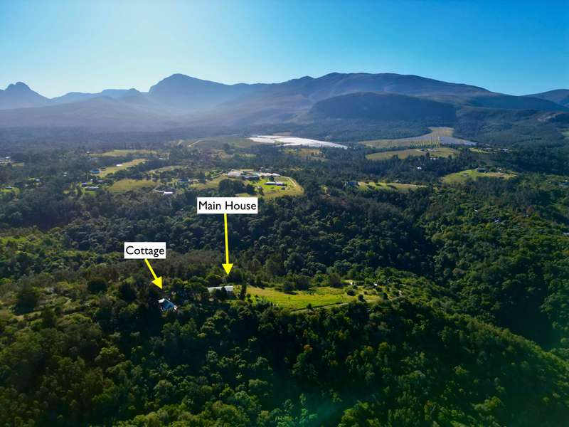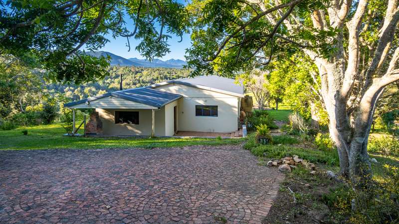 Exclusive Sole Mandate – 3-Hectare Smallholding in Wilderness Heights. Tucked away in the heart of Wilderness Heights, this 3-hectare smallholding offers an extraordinary opportunity to create your dream lifestyle in one of the most scenic and serene locations along the Garden Route. Offering beautiful mountain and valley views, this property is perfectly positioned just a few minutes from the Wilderness village and pristine coastline. This is a space with remarkable potential—whether you envision a peaceful family homestead, a countryside retreat, or a dual-living setup with rental income possibilities. It’s an invitation to build, restore, and reimagine. The land itself spans three hectares of gently sloping terrain, offering a sanctuary for local birdlife and small wildlife. The main house, measuring approximately 308 square metres, and offers a blank canvas for transformation. The home features three bedrooms and two bathrooms, one of which is en-suite. Both bathrooms are in need of updating, making this an ideal project for someone with vision and a flair for design. The main living area is open-plan, with expansive windows capturing breathtaking views, and flows into what could become a showpiece kitchen and lounge area. A second lounge or family room provides flexibility for entertainment or relaxed everyday living. A dedicated study offers the option to work from home, while a separate scullery and laundry area enhance functionality. Beneath the home, storage areas could easily be used as a workshop or potentially converted for further use. In addition to the main house, the property includes a characterful, double-storey wooden cottage of approximately 86 square metres. This fully self-contained dwelling is private, warm, and inviting—ideal for guests, extended family, or as a ready-to-go rental unit. The ground floor includes a main bedroom with an en-suite bathroom and an open-plan kitchen and lounge area that opens onto a wooden deck overlooking the surrounding forest. Upstairs, you'll find a second bedroom with a balcony, a flexible study nook or creative space, and a second bathroom, offering comfort and flexibility with a rustic yet modern touch. Adding to the versatility of the property is a freestanding rondavel-style outbuilding. This charming structure could serve as a creative studio, an office, staff accommodation, or extra storage, depending on your needs. The property is fully serviced, with a single-phase Eskom electricity connection and municipal water supply. Zoning falls under Agricultural Zone II, offering a range of permitted uses while preserving the rural character of the area. Opportunities like this are rare—three hectares of scenic, usable land in one of the most sought-after locations in Wilderness. With a spacious main residence ready for revitalisation, a fully equipped second dwelling, and flexible additional space, this smallholding offers the foundation for a truly special lifestyle. Whether your vision includes restoring a character-filled homestead, developing a dual-living or income-generating property, or simply embracing a peaceful, nature-inspired way of life, this property provides the space, setting, and soul to bring it to life. Contact us today to arrange your private viewing and experience the unique potential of this special offering in Wilderness Heights.