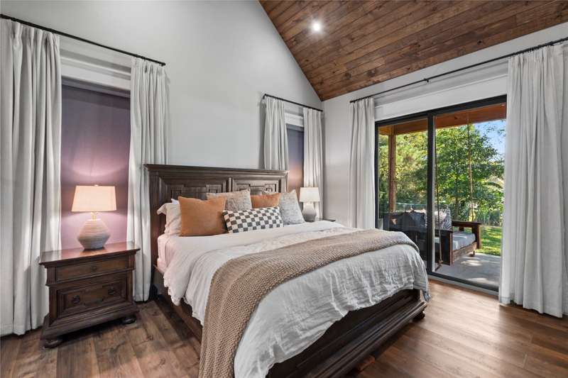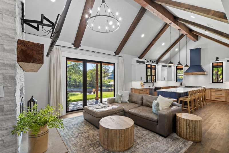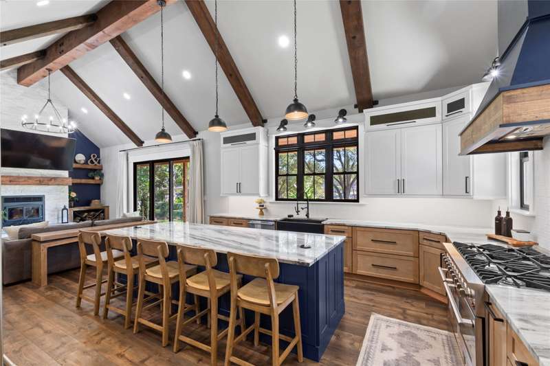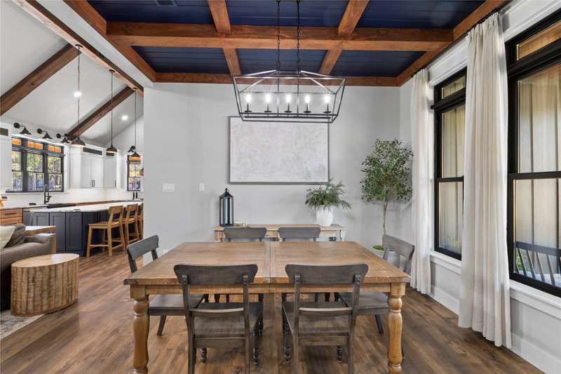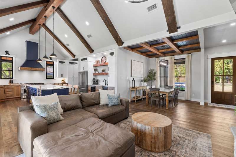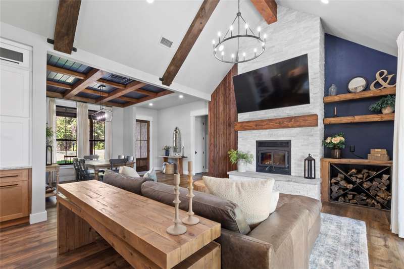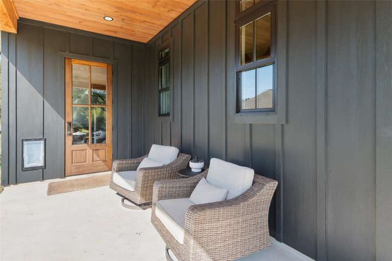 Completed in 2023, this exceptional waterfront residence offers 2,700 square feet of thoughtfully designed living space, featuring five bedrooms and three and a half baths. A brand-new boathouse, currently under construction with an estimated completion in December 2025, will perfectly complement the homes sophisticated lakeside lifestyle. Inside, the open-concept living area showcases a soaring vaulted ceiling accented by wood beams, elegant LVP flooring, and a striking wood-burning fireplace that anchors the space. The gourmet kitchen is a showpiece, boasting custom cabinetry, a spacious sit-around island, an 8-burner Forno gas range, and a stylish wet bar complete with a beverage refrigerator and ice machine. A large utility room offers abundant storage and a custom dog-washing station for added convenience. The main-level waterside primary suite provides a serene retreat with a luxurious ensuite bath featuring dual vanities, a soaking tub, a separate walk-in shower, and an expansive closet with built-ins. Upstairs, guests will enjoy another ensuite bedroom along with three additional bedrooms and a full bath, offering ample space for family and visitors alike.Designed for effortless indoor-outdoor living, the homes expansive covered back porch spans the entire width of the residence and is equipped with a misting system for year-round comfort. A spacious deck and patio at the waters edge invite relaxation around the fire pit while taking in tranquil cove views. Positioned with a desirable southeast exposure, the home enjoys cooling breezes and natural protection from the western sun. A gracious drive-up approach and an oversized two-car garage complete this remarkable lakeside retreat, blending refined craftsmanship with modern comfort in a truly stunning setting.
