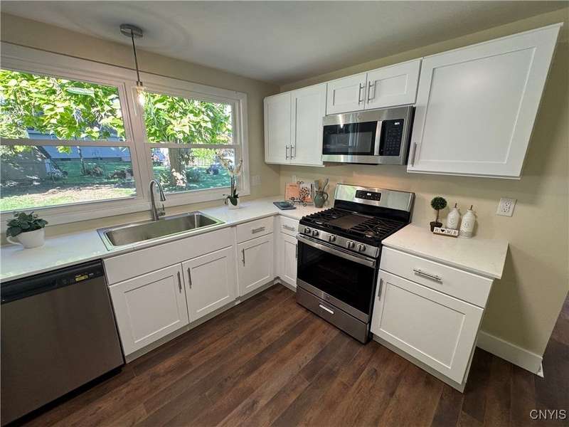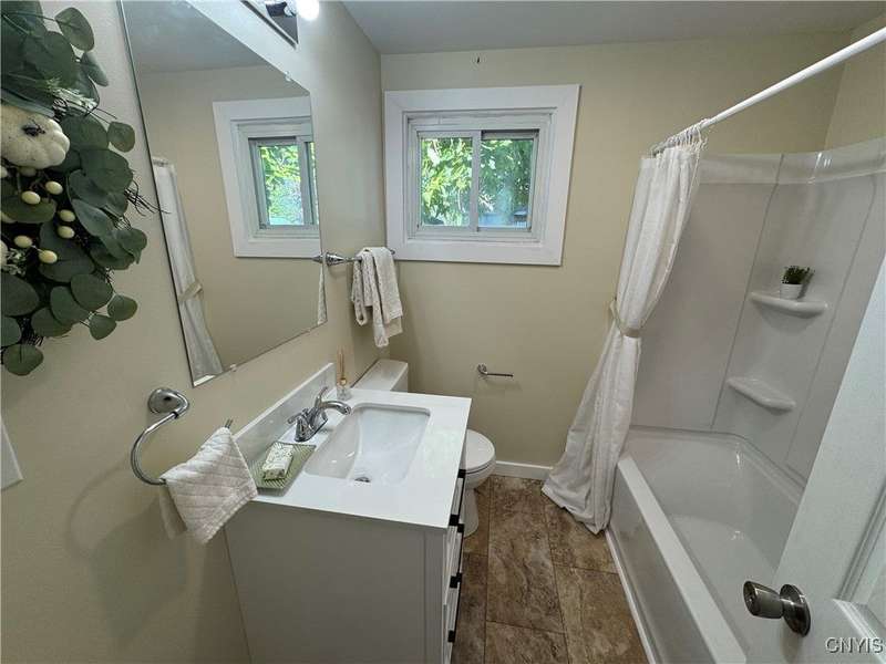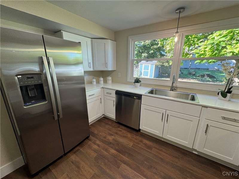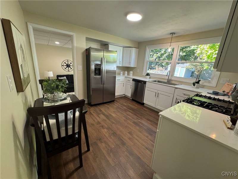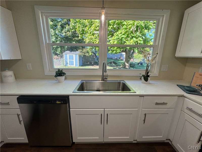 Welcome home to this beautifully restored 3 bedroom 2 full bath Cape Cod with loads of upgrades such as a BRAND NEW ROOF, brand new furnace, new kitchen and baths, including quartz countertops, new kitchen cabinets, new luxury vinyl tile flooring, wall-to-wall carpeting in all bedrooms, vinyl windows, fresh exterior and interior paint, and so much more! Enjoy the views of the ample backyard from the deep, single-basin kitchen sink, or bask in the sunlight of the front living room space. Garage was converted into a second family/dining room with direct access to backyard, perfect for an eventual patio and grilling location. Two full bathrooms on both floors add loads of convenience, while the full basement with laundry hookups, shed in the backyard, and the front half of the original garage give you plenty of storage space. Baldwinsville school district. Come see all this wonderful home has to offer? book your showing today!