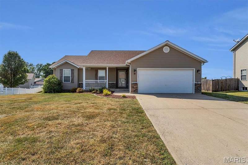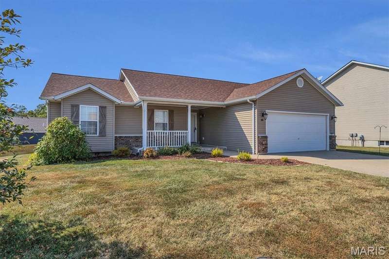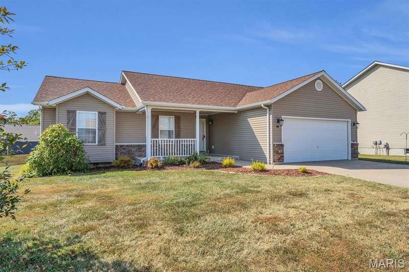 Ranch home, 3 bedrooms, 2 full baths, and 2 car garage. Exterior includes Large yard, nice landscaping, new architectural shingle roof, vinyl siding, and partial brick front. Great interior features include main floor laundry, vaulted ceilings, upgraded lighting, stainless steel appliances, maple cabinets, breakfast bar, walk in shower, walk in closets, bay in breakfast room, and so much more. Easy access to highways. Subdivision play ground. Shows well and move in ready! Home has passed the Wright City Occupancy Inspection.