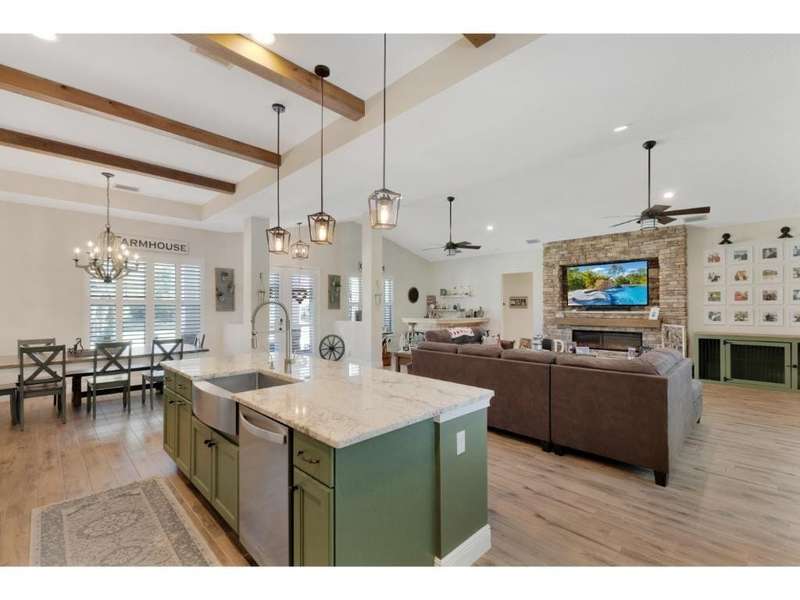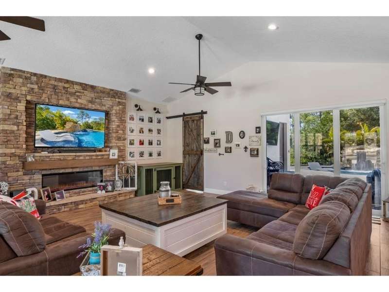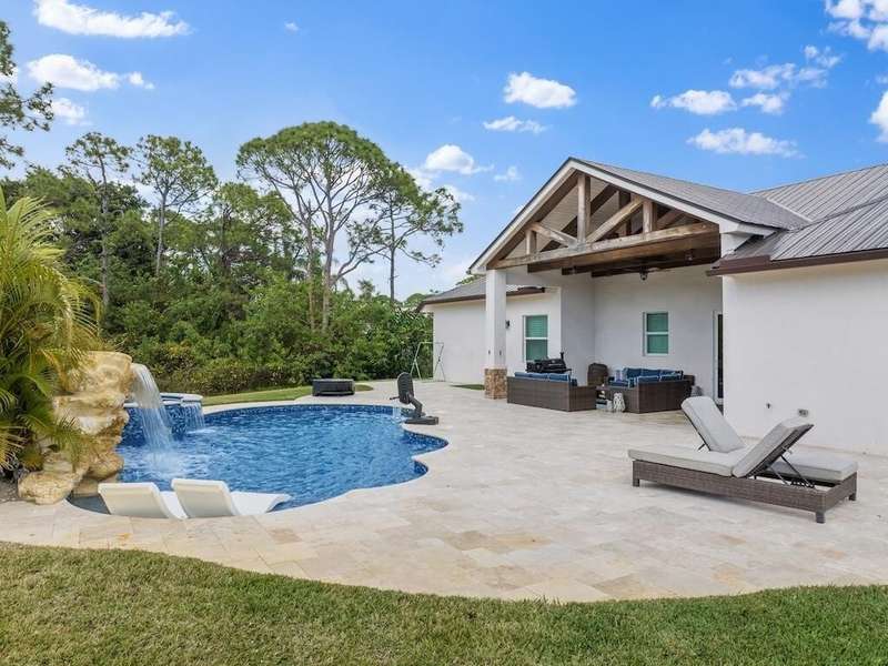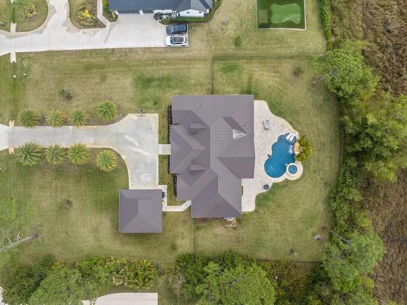 Welcome home! Discover this exceptional CBS residence in the highly sought-after Evergreen/Crane Watch neighborhood. This property is situated on a 1-acre lot and was constructed in 2020. The home features 3 bdrms, 2 baths, an oversized detached 2-car garage, and a spacious flex room, suitable as a game room or 4th bdrm. Highlights include a metal roof, hurricane impact windows and doors, over 3,000 sqft of living space, and a custom pool with a built-in jacuzzi and rock waterfall. Additional amenities comprise a custom-built bar with a Granite Countertop and Plantation Shutters throughout.