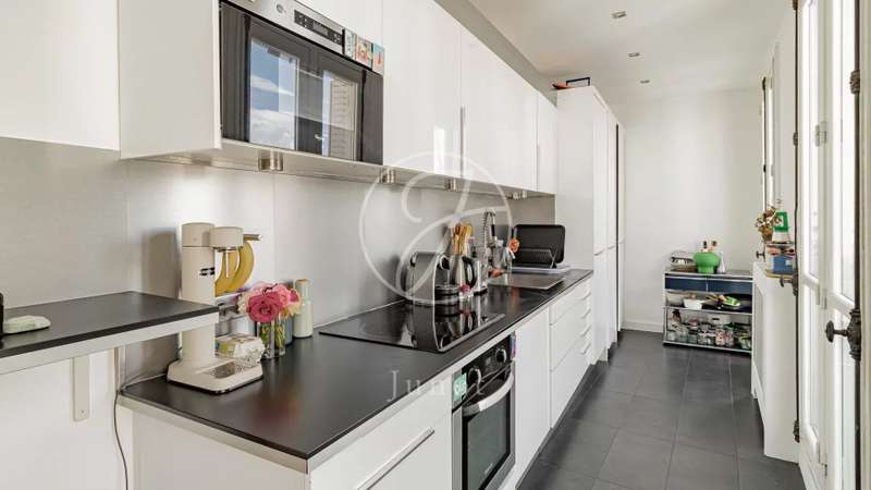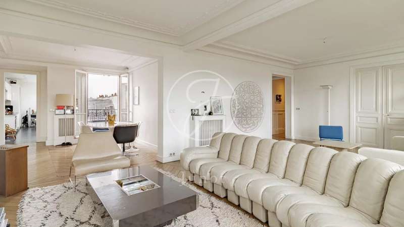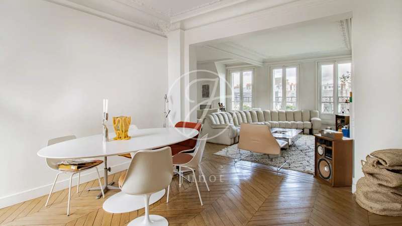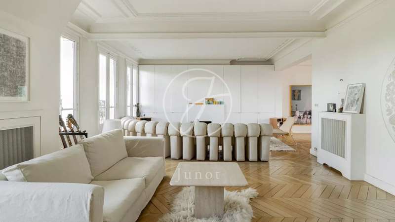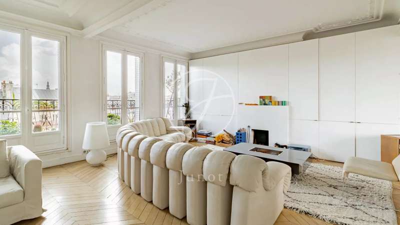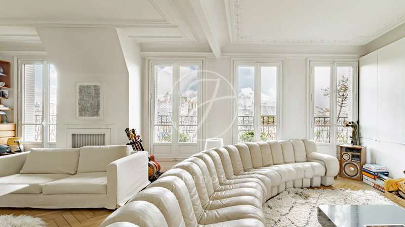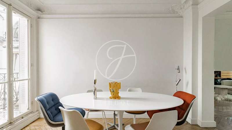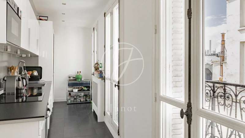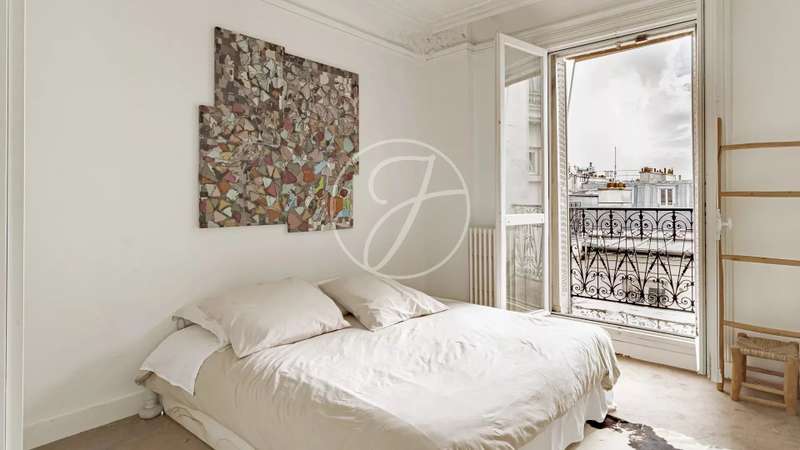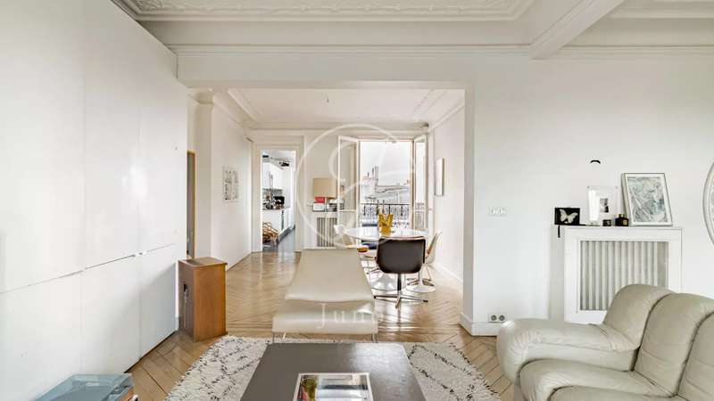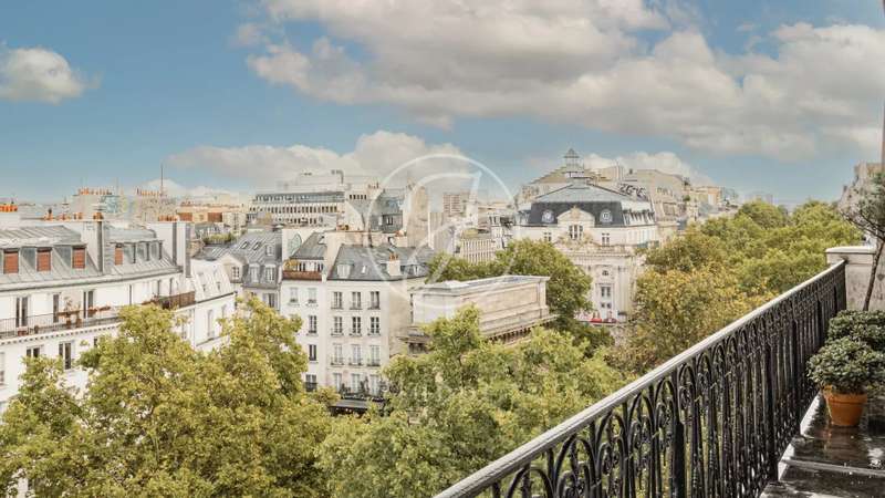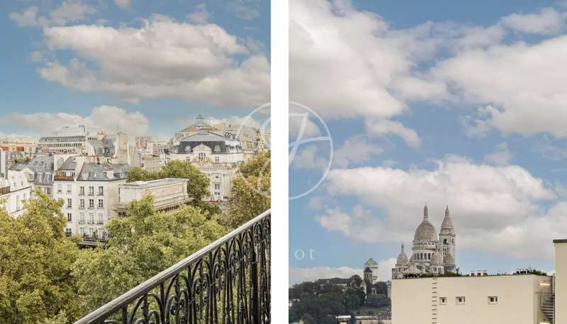 On the edge of the Marais, in the 2nd and 10th arrondissements, on the sixth floor by elevator of a handsome freestone building, alone on the landing, magnificent 120.77sqm loi Carrez walk-through apartment with exteriors and unobstructed views of Paris and the Sacré-Cœur. It comprises a triple reception room bathed in sunlight and open on both sides (street and courtyard) onto two balconies with unobstructed views, and an elegant independent kitchen also giving access to the balcony. The night side comprises three bedrooms, two of which open onto the courtyard and one with a balcony, a bathroom, a shower room with toilet and a separate toilet. This stylish apartment, in good condition, has retained all the charm of the past: herringbone parquet flooring, original moldings and fireplaces. Well-maintained condominium. A large cellar completes this property.