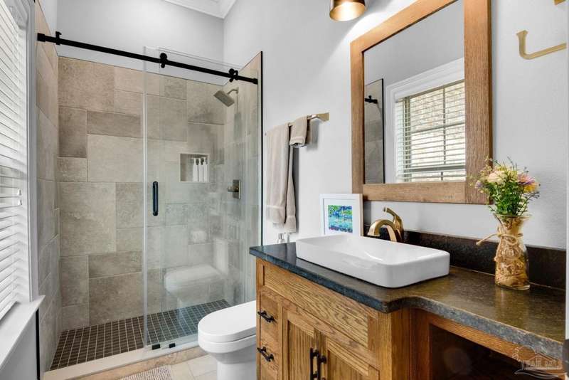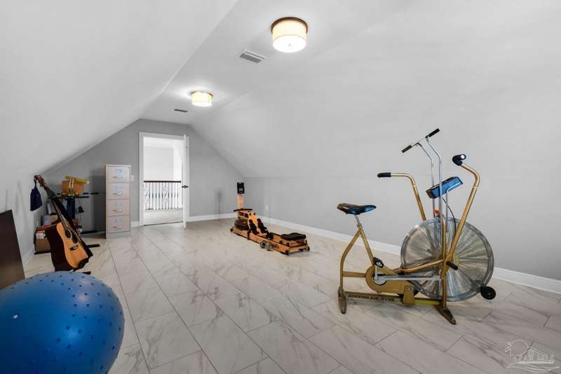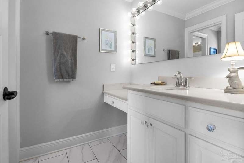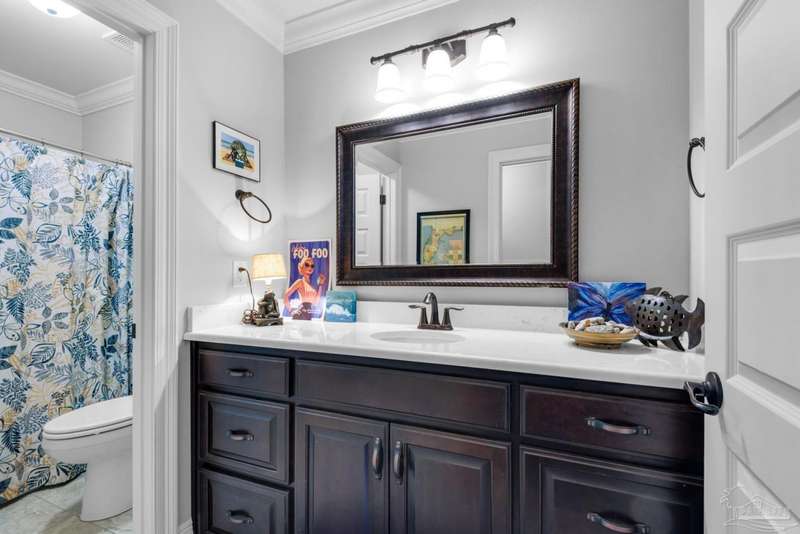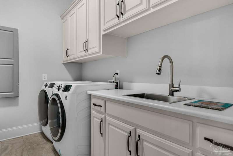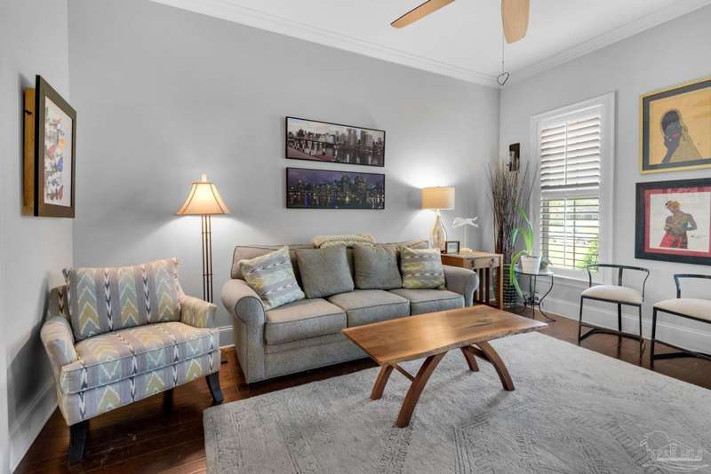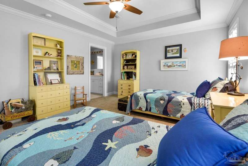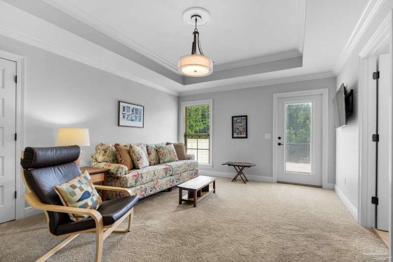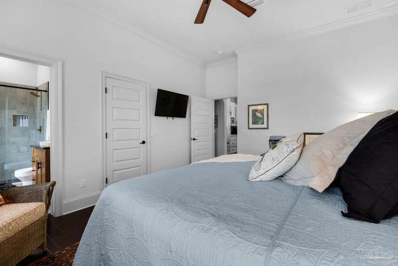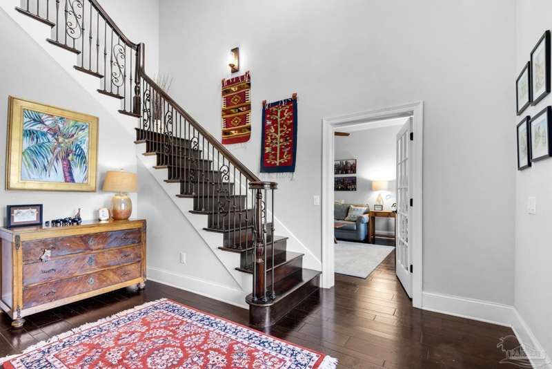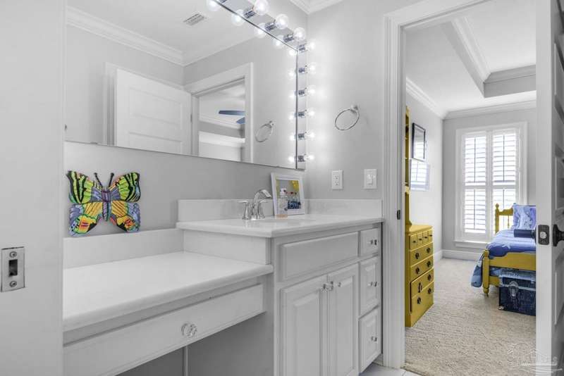 Nestled on an oversized lot in the gated Highlands section of The Moors, this elegant home offers unrivaled privacy and serenity. Boarded by a lush green space and spanning approximately 4,719 sqft, the thoughtfully designed layout combines comfort and style. The home features 6 bedrooms, 5 with walk-in closets, and 4 1/2 bathrooms, a dedicated office space, along with 2 versatile bonus rooms ideal for hobbies, media, or a private gym. The foyer welcomes you with soaring ceilings and a grand staircase. The open and airy atmosphere is enhanced by ten-foot ceilings on the first level. Through the foyer you are greeted by distinct yet open spaces that flow seamlessly by design. A room adjacent to the foyer is perfect for media or a private office. The expansive family room has an oversized fireplace and built-in bookcases, creating a warm gathering space. The gourmet kitchen features bar seating and flows seamlessly into the dining area - perfect for entertaining. The primary suite is a retreat, complete with built-in cabinetry and an electric fireplace. The spa-like bathroom includes a walk-in shower, soaking tub, double vanity, and two walk-in closets. On the first floor, you'll also find a guest bedroom with an attached bath, a spacious laundry room, and a second staircase. Upstairs there are 4 bedrooms, 2 baths, a dedicated office space with built-in desk and hutch, a bonus room, and a sun deck overlooking the backyard -ideal for relaxation. The backyard is an entertainer's dream: a covered lanai with an outdoor kitchen, ample spade for al fresco dining, and a paver patio leading to a heated sparkling quartz gunite pool with an attached spa. Professionally landscaped gardens and flagstone edging complete this outdoor paradise. Additional features include a Sonos sound system, oversized 3-car garage, irrigation well, security system, impact windows, underground propane tank, 2 gas lanterns, and proximity to The Moors Fitness Center and Clubhouse - just minutes away.