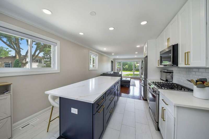 Welcome to 744 North Neva Avenue in Addison - a beautifully updated, all-brick home set on a large lot in a prime location. This 3-bedroom, 2-bath residence has been thoughtfully renovated throughout, blending modern finishes with timeless charm. Step inside to discover a bright and inviting floor plan featuring gleaming hardwood floors, a stunning kitchen with a large island, quartz countertops, high-end white cabinetry, and stainless steel appliances. Both bathrooms have been completely updated with tasteful finishes, offering a true move-in ready experience. Enjoy extra living space in the basement, perfect for a recreation room, home gym, or play area. Outside, relax in the private fenced-in backyard, complete with a screened-in porch for seasonal enjoyment, an oversized two-car detached garage, a concrete driveway, and an additional storage shed. Located just minutes from downtown Addison, this home offers convenient access to shopping, restaurants, and expressways while still providing a quiet residential setting.