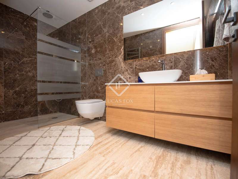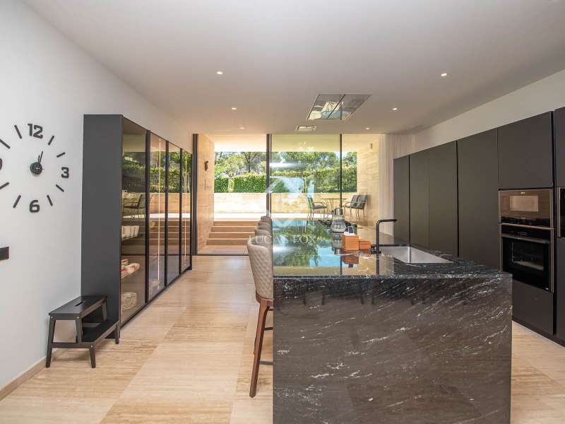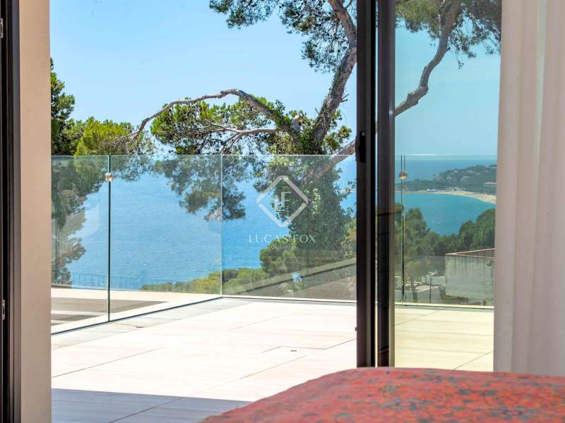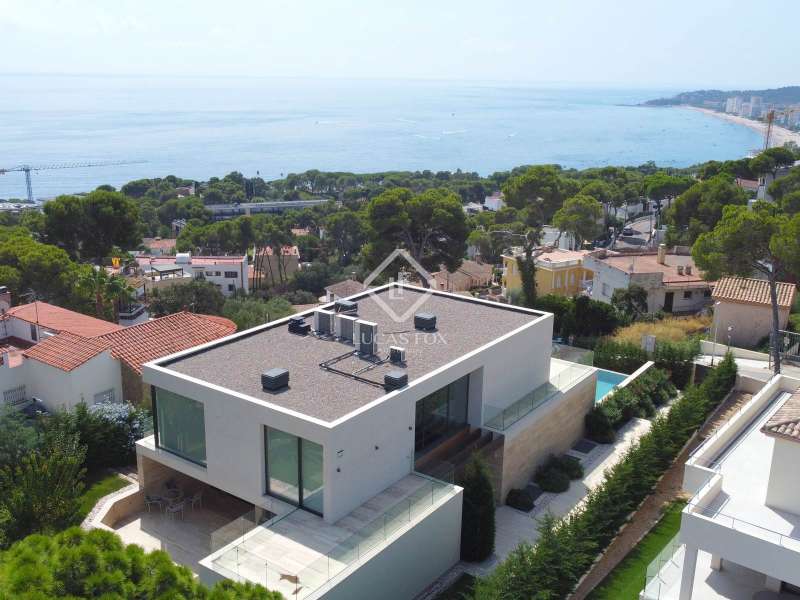 Villa Alma is a modern luxury property with magnificent sea views located in a quiet area of Sant Antoni de Calonge, a short distance from the beautiful beaches and coves of the Costa Brava. It was built in 2022 with the highest quality materials, making it synonymous with luxury and comfort in every corner. The finishes used were travertine natural stone, Emperador natural marble stone, natural oak parquet, Cortizo windows, underfloor heating and an aerothermics system. Entering this stunning property through a well-kept garden , we are welcomed by a spacious entrance hall with a high ceiling and natural marble walls. The large dining room living room has a centralised mains gas fireplace built into the wall with a natural marble and oak finish, while floor-to-ceiling windows lead to a terrace with a swimming pool and magnificent sea views. The huge kitchen with a central island made of black granite natural stone is equipped with high-end appliances , a dining area and access to a terrace with a summer dining room and another with a garden. In addition, on the same floor we see a guest bathroom and a double bedroom with a private bathroom and access to the terrace. A beautiful staircase with monolithic natural oak steps leads us to the night area, where we have three large bedrooms with private bathrooms and terraces, as well as a room for an study. The majestic main bedroom with fabulous sea views has a dressing room, a large bathroom with shower and bathtub, and a solarium terrace with panoramic views. On the lower floor there is a wine cellar and spa with a cold water pool and a dry sauna made of volcanic stone and olive walls. There is also a cinema and relaxation room, a laundry room, a utility room and a garage for four vehicles. Finally, this floor has a pantry and a bathroom. The villa is carefully thought out and tastefully decorated. Its perfect south orientation, sea views, swimming pool, terraces, flat garden , top quality materials and proximity to the most beautiful beaches and coves of the Costa Brava and the vibrant coastal town of Playa de Aro make this property a unique and ideal place for those seeking a comfortable and quality lifestyle. Please do not hesitate to contact us for more information and to arrange a viewing.