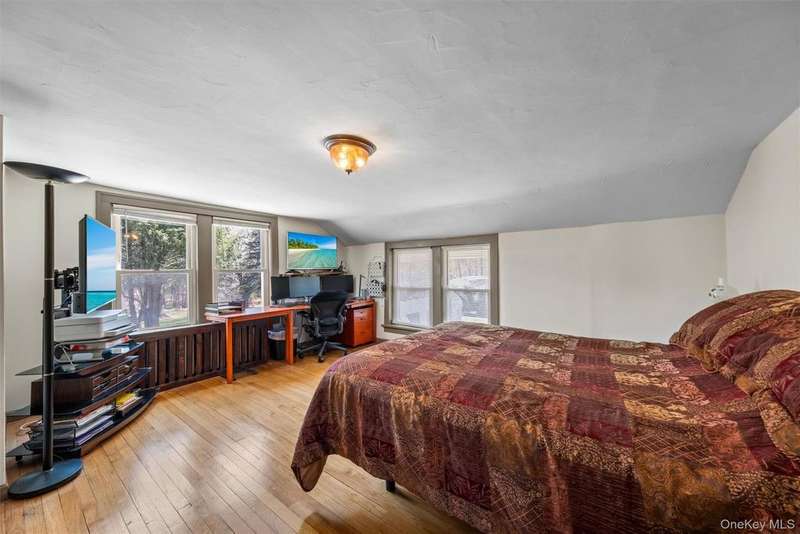 This farmhouse style home on 4.3 acres has a ton of income potential for an investor as a multi-family with workshop/garage for rentals, a home based business with plenty of parking, multi-generational living or live in one part and rent the other for help with the mortgage. Built in 1900, the home has had a few additions over the years to now have a total of 5 bedrooms and 4 full bathrooms. The kitchen has just the right amount of vintage charm and style with tile counters and backsplash and a wall of windows to let sunshine soak the room, and the fabulous 3 season room off the kitchen overlooks the pond and gardens. It's the perfect respite on a warm summer evening. The large laundry room is next to the kitchen and has plenty of cabinets and work space. The cozy dining room is the perfect place for an intimate dinner party. The spacious living room shows off a brick fireplace and sliders to a private side patio. The large, private primary suite boasts large closets, a picture window with auto blinds, and a private bathroom. Hardwood floors throughout the first floor. Upstairs you'll find a sizable living space, an updated kitchen, 3 bedrooms, 2 bathrooms, office/storage room and a private deck perfect for dining alfresco. The upstairs space lends itself to being split into two apartments as well for a total of 3 units. The basement is partially finished with a bar/play area and an unfinished area with a workbench and sink. Outside the home you'll find a few areas you'll want to sneak away to...a wide front porch just waiting for a swing, choice of 2 patios on either side of the house, and various sitting areas throughout the yard. Take a walk to the workshop, passing the ducks swimming in the pond and fenced garden along the way (the garden has a water line!). The shop has an under-the-floor run for a dust vacuum perfect for woodworkers, and an attached one car garage. The sky's the limit with what you can do with it! Base your business out of it, rent it out or enjoy it as a hobby shop; either way you'll be thrilled to have it in your backyard. The vast yard has mature plantings and the lively pond is a delight with willow trees, a small bridge and plenty of wildlife. This home has so many possibilities for income or the extended family. It's located convenient to schools and shopping, and minutes to highways, train or bus stations for an easy commute to NYC. If you can pull yourself away from this piece of paradise, enjoy all the area has to offer...world class outdoor recreation is a stone's throw away, as are wonderful local restaurants and shops, breweries, the wine trail and rail trails. See attached Property Condition Disclosure for details on the property.