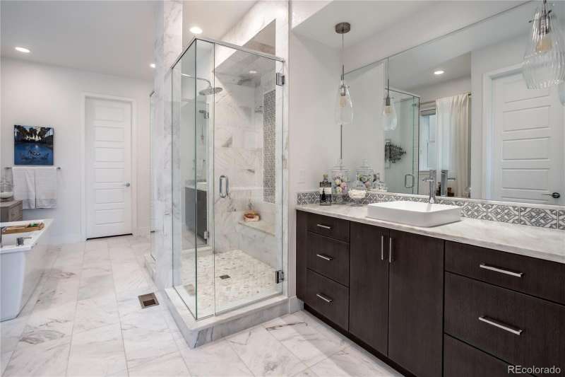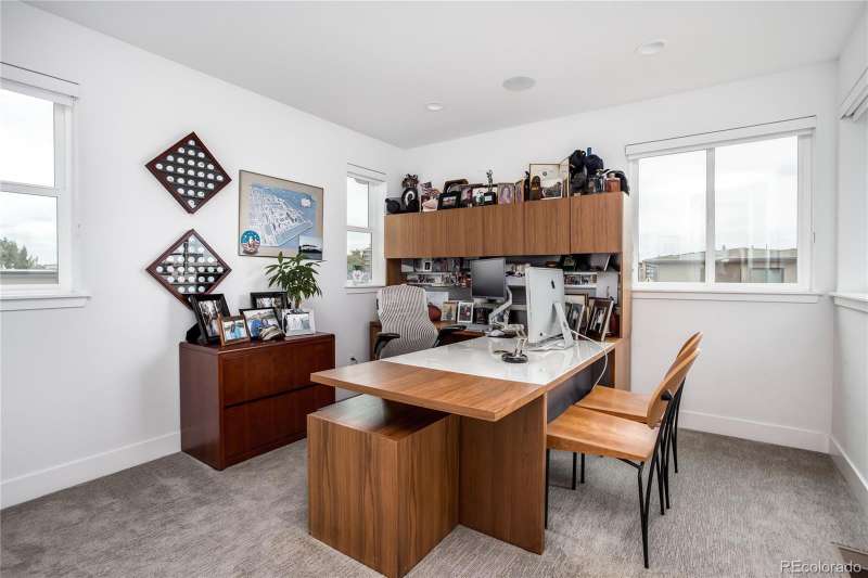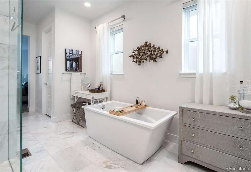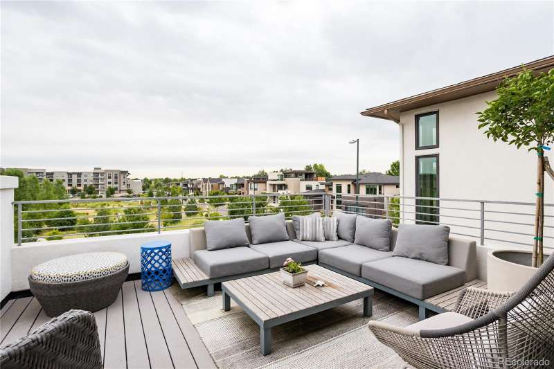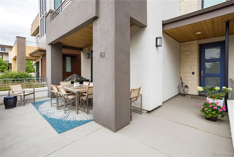 Welcome to 43 S Oneida Court. A luxurious residence in Denvers sought-after Boulevard One Lowry neighborhood. This three-story, modern home will exceed all your expectations with its harmonious, spacious floor plan and effortless flow.Striking architecture with outstanding design and craftmanship in this stunning city chic home is truly one of a kind.The exquisite interior combined with the strong connection to the outdoors creates a home you will be hesitant to leave. The professional gourmet kitchen boasts high-end Wolf range and Subzero refrigerator, quartz countertops, and a massive island. It is the perfect place to gather, with the adjacent great room. Truly the heart of the home. The primary suite is polished and serene, ushering in a sense of peace and tranquility. The primary bathroom features extensive marble finishings and the soaking tub will melt away the stress of the day. The 3rd level is a wonderful secondary spot to gather. The kitchenette includes a wet bar and built-in drawer refrigerator, freezer with ice maker and dishwasher, perfect for entertaining. A roof top deck to entertain or simply relax completes this stylish and sophisticated home.