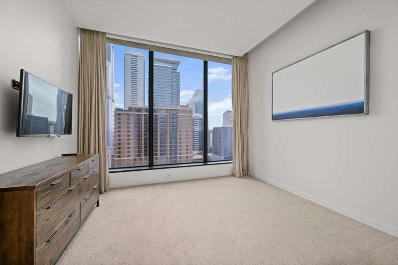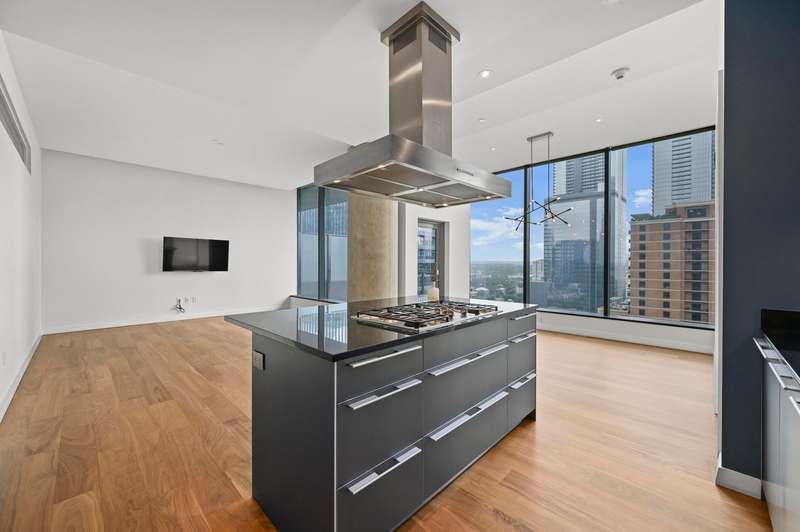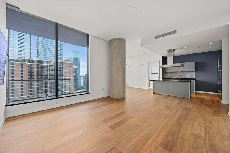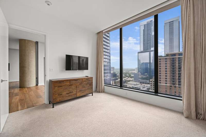 Experience lock-and-leave urban luxury living at the W Residences in the heart of downtown Austin. This 2 BR / 2.5 BA north-facing residence overlooks the city and Republic Park with dramatic views - especially at night through its expansive wall of windows and balcony. This home boasts some of the lowest property taxes based upon comparable listings. The newly refinished walnut floors anchor the entry, living room and modern kitchen featuring Bulthaup cabinetry, Miele appliances and an extended multifunctional island that transitions from breakfast bar, to cocktail station or as a work-from-home desk. The primary bath's marble-clad shower, counters and floors have also recently been refinished along with the installation of new shower fixtures. A thoughtfully designed California Closet system completes the primary suite. Recent paint and carpet and required leak detection system is in place. Additionally, residents are invited to enjoy all the amenities of the adjacent newly renovated W Hotel following its spectacular $40 million renovation including 24 hr concierge and valet. ; ACL, the bustling 2nd Street District, and Lady Bird Lake trail are all just steps away. ;