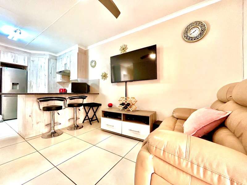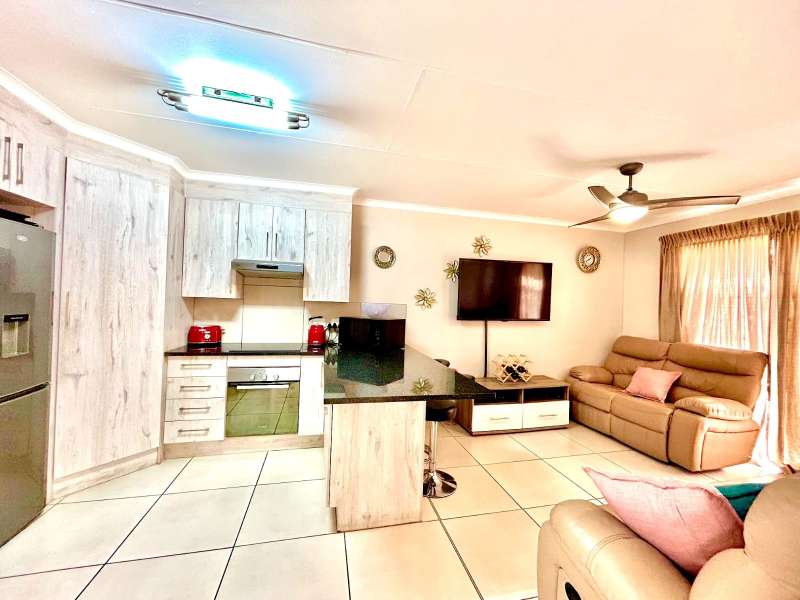 This is modern living in a secure Estate!!! It is situated near all ammenities. It offers open plan living area and kitchen, 2 bedroom, bathroom and single garage. This is a cozy home of 80m2 for a young starter family, or person who live the quiet life. It is charming modern home. The property is walled, with single garage with outside parking for 2 cars. The Estate is fully secure with main guardhouse entrance, 24 hour security. The Estate has many things for entertainment eg. park for kids to play clubhouse for parties overlooking the river. This beautiful home is priced to sell. Feel free to make pre-approved with an agent with no cost. Come view this anytime.