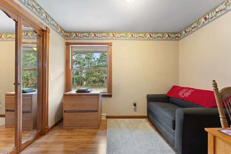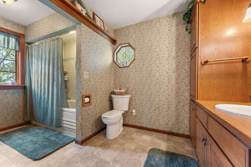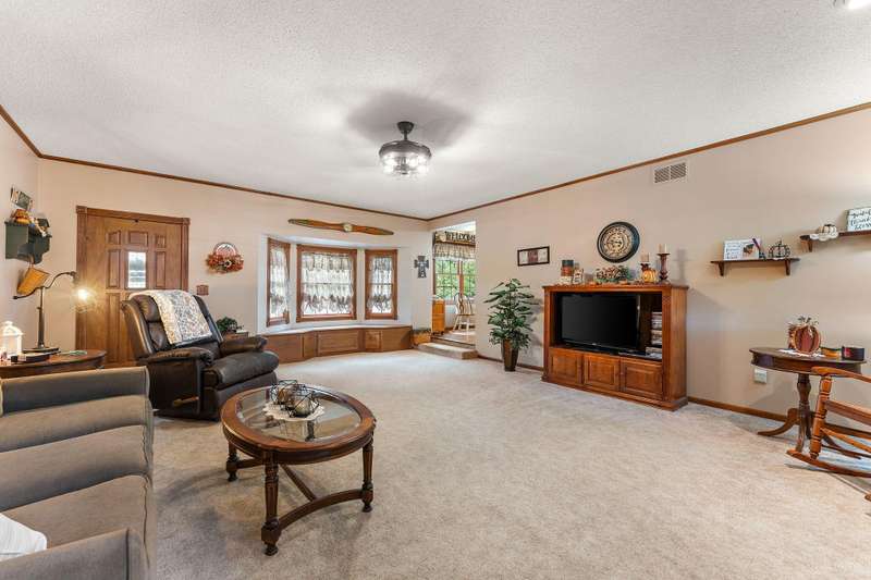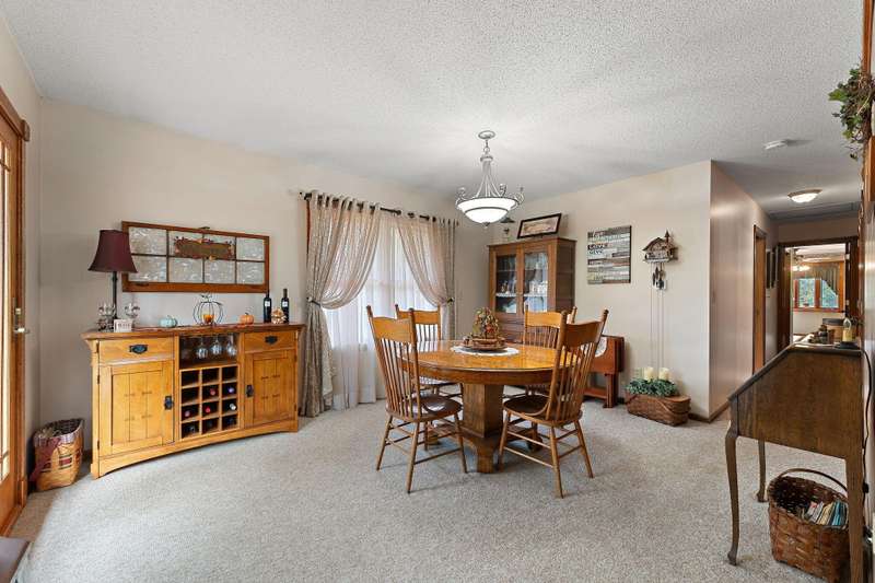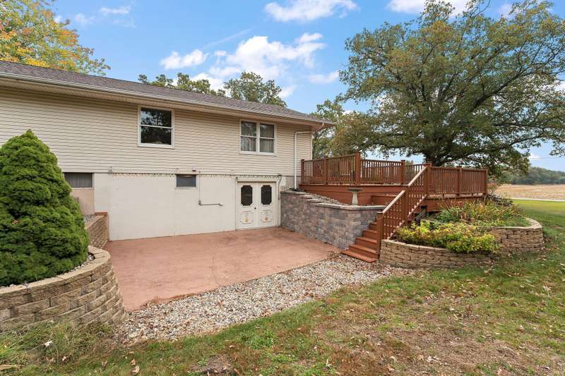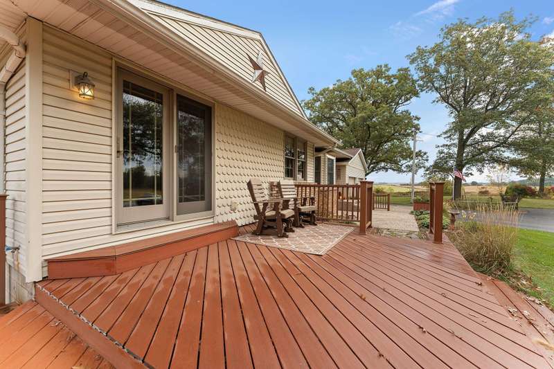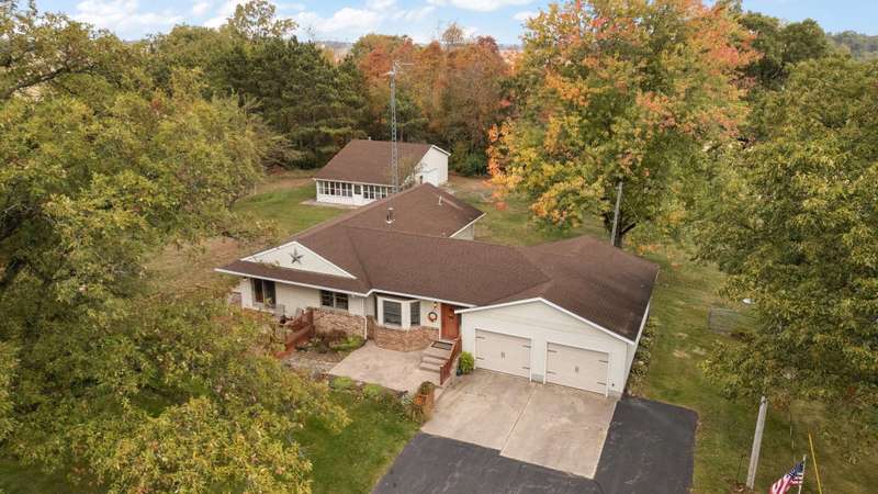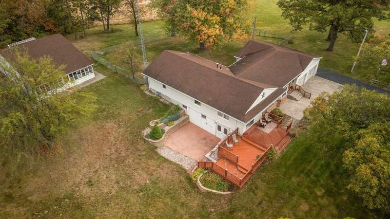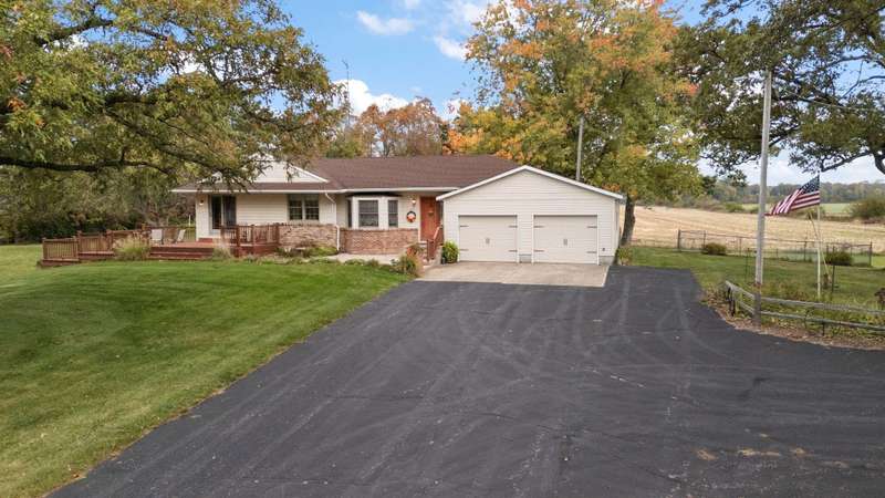 Country Charmer with a perfect blend of comfort, convenience, and amenities. This Ranch home is set back on nearly 2 ACRES and offers an abundance of desired features. Updated Kitchen with all appliances, sunk-in Living Room with gas Fireplace, Dining Room with French doors that lead out to an expansive Deck, and a spacious Primary Suite (part of a newer addition) with huge walk-in Closet and ensuite Bath. Downstairs, the walk-out Basement exits out to a large Patio (new Retaining Wall last year) and is partially finished to include a Family/Rec Room and an Office or possible 4th Bedroom. Outdoors, you'll find a beautiful and tranquil space along with a fenced-in back yard and a couple of bountiful fruit trees. The apples are APPLE-SOLUTELY delicious. Plus, in addition to the attached 2 1/2 car garage, there's a Detached 3 Car heated Workshop/Garage with an amazing 3 Seasons Room. Nestled quietly in a rural setting, yet minutes to town. Location is great! Schedule your showing today.