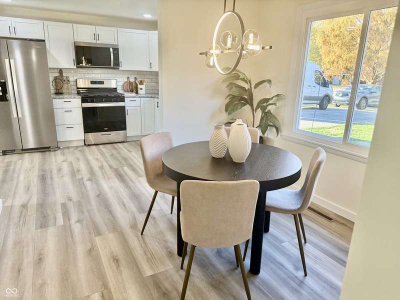 Convenient to everything w/easy access to I69 in Harmeson Heights, totally renovated 3 Bed/2 Bath Cape Cod w/optional main floor primary, ample living space and a huge back yard! Everything has been updated, all new kitchen cabinets, granite, SS appliances, with a great room and separate living room w/built ins, separate dining room and optional main floor primary bedroom, all flow with new LVP flooring. All new lighting, vanities, paint, windows, updated stair railing, new furnace, too many to mention! Huge main floor bathroom and new upstairs laundry room The expansive lot, measuring 14076 square feet, presents privacy and great for entertaining!