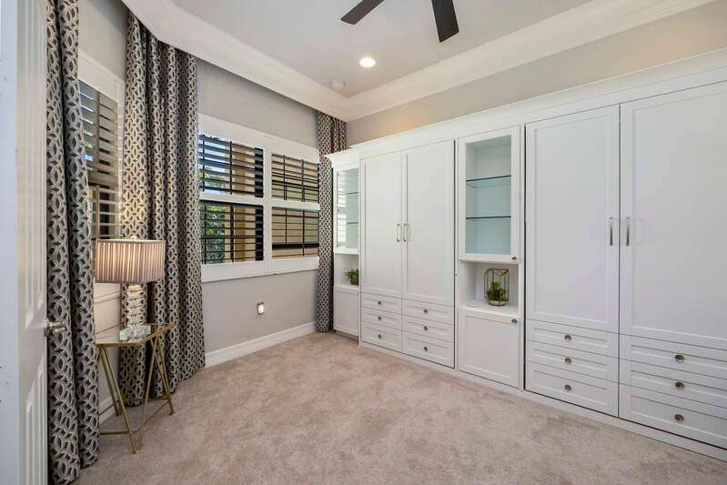 "Live Life Beautifully in Southwest Florida" in this Meticulously Maintained, Fully Furnished Villa with Lake View at Marbella Isles in Naples, FL . Welcome to this beautifully appointed 2-bedroom + den, 2-bath attached villa in the highly sought-after Marbella Isles community. Boasting a serene lake view and an array of upscale upgrades, this meticulously maintained home offers the perfect blend of comfort, style, and functionality - all from its original owner and offered fully furnished. Step inside to find wood-look tile flooring throughout the main living areas, plush carpet in the bedrooms, and designer details at every turn, including crown molding, wainscoting, plantation shutters, and custom draperies. The tray ceilings feature beautiful wood inlays adding a warm, elegant touch. The chef's kitchen is upgraded with soft-close cabinetry, quartz countertops, and premium finishes, matched seamlessly in both bathrooms. The den is outfitted with a California Closet system with Murphy beds, making it a versatile space that allows the home to comfortably sleep six. Additional features include: Two-car garage, Accordion hurricane shutters on all windows and slider, Electric hurricane screen on the lanai, Extended patio overlooking the lake, Upgraded laundry room with brand-new washer/dryer, cabinetry, and sink. Marbella Isles is a low-fee, gated resort-style community ideally located in the heart of Naples - just 7 minutes to Mercato, 10 minutes to local beaches, 15 minutes to Downtown Naples, and 25 minutes to Southwest Florida International Airport. Amenities include: Resort-style pool and separate kiddie pool with slides, Spacious clubhouse with full kitchen, card room, and game room, Tennis, pickleball, bocce ball, half-court basketball, volleyball, Fitness center and social activities for all ages This villa is truly move-in ready - perfect as a full-time residence or seasonal retreat. Don't miss the opportunity to own in one of Naples' most desirable communities!