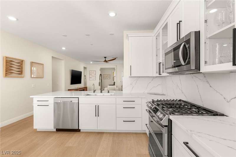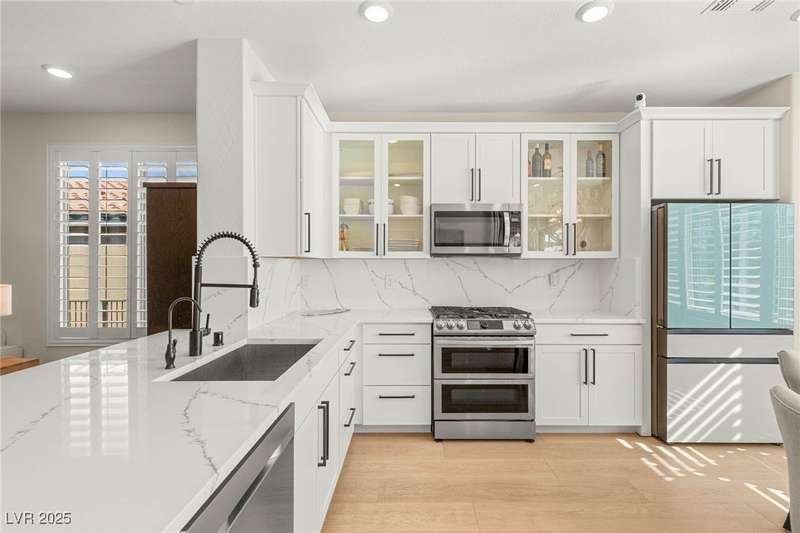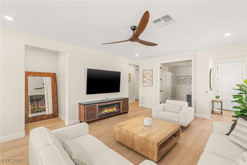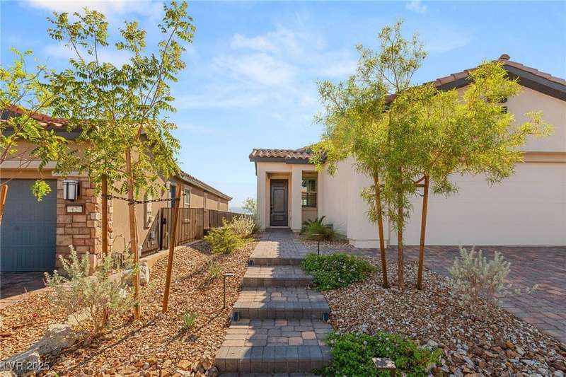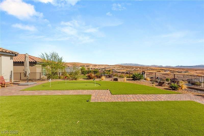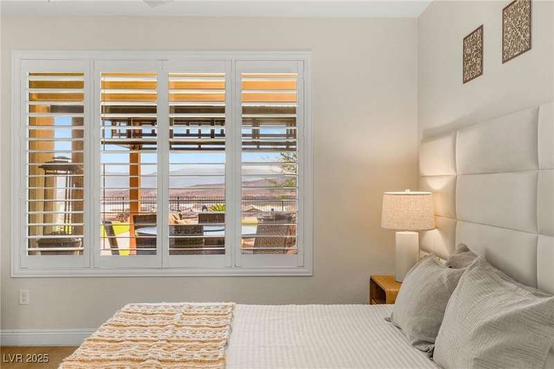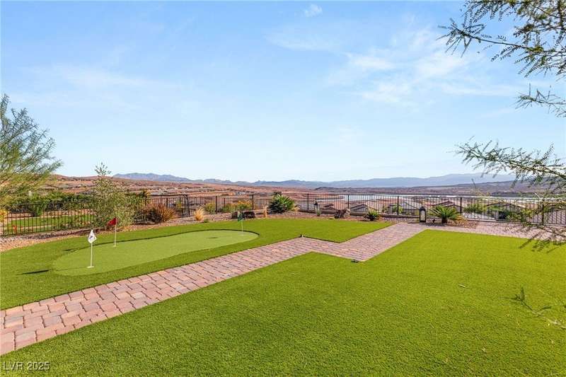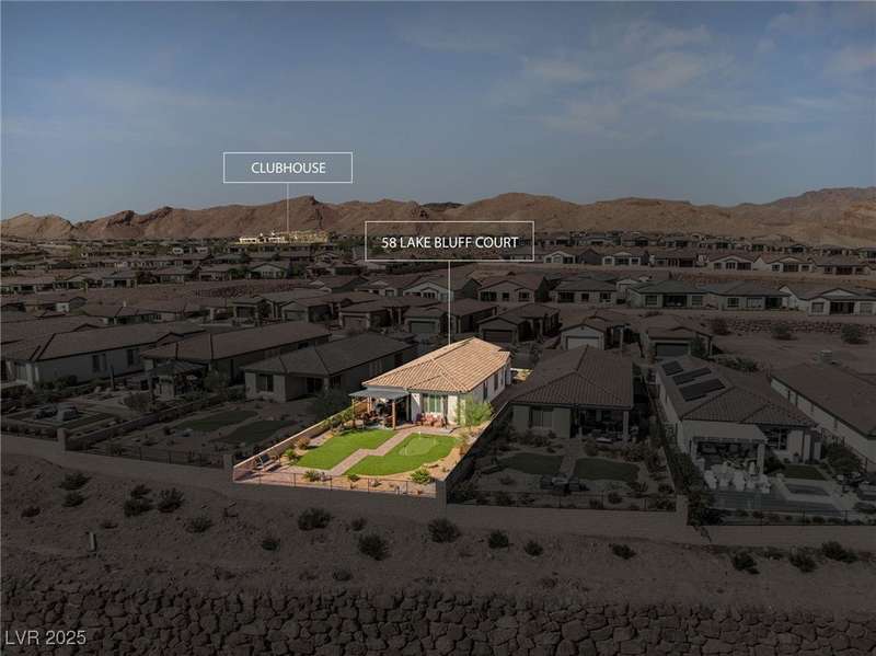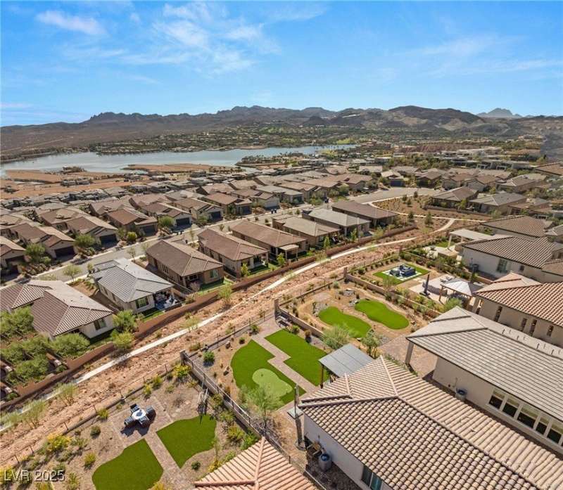 Unique opportunity to own the ONLY east facing backyard available on Lake Bluff Court! Perched 50 ft higher than the homes below, this stunning home sits on one of the largest lots in the entire community with 180-degree lake and mountain views. This completely turn-key property welcomes you into a massive open concept living area flooded with natural light. You will love the blonde plank floors, white cabinets w/custom glass inserts, stainless appliances, slab calcutta counters, crisp white shutters, entire property has smart home capability, and whole house puragain filtration system! Enjoy a sizeable den w/french doors and built in murphy bed, perfect for an office or additional guest quarters. Primary bedroom offers gorgeous views just off an oversized bath with dual vanities, shower w/bench seat and walk-in closet. Step outside and relax under your covered patio w/pergola extension capturing the most stunning sunsets! State of the art clubhouse with endless amenities!