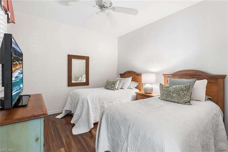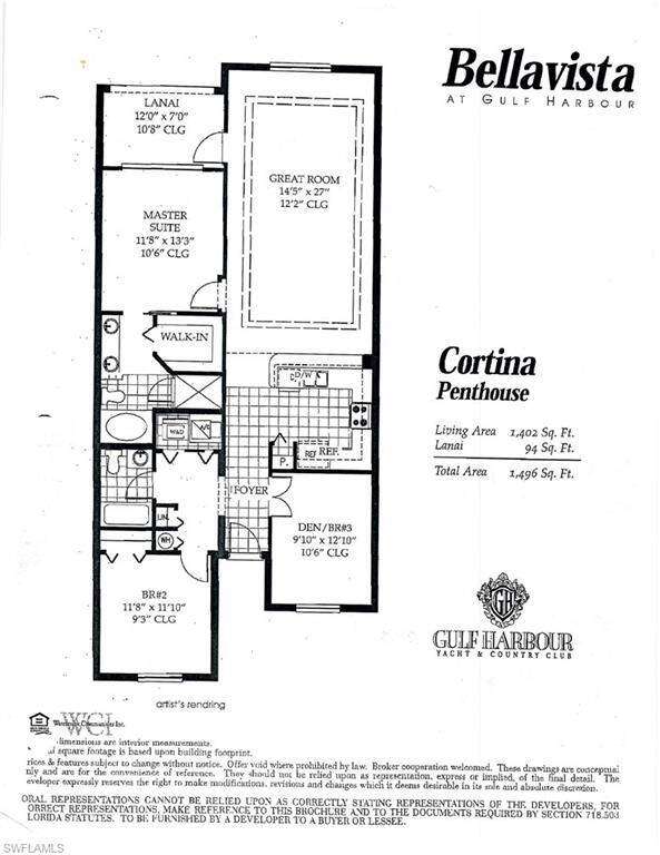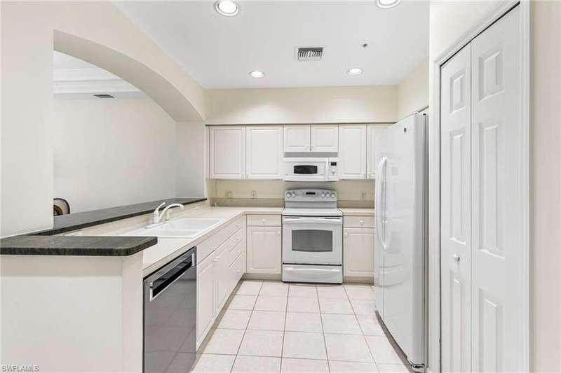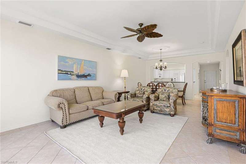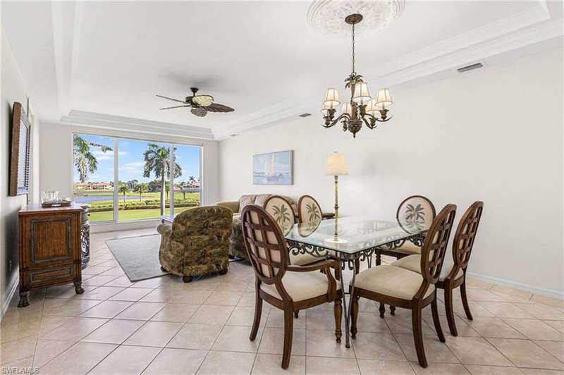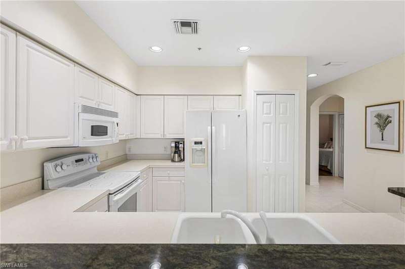 Bellavista | Gulf Harbour Yacht & Country Club This view can be yours! Experience resort-style living in this exquisite 2-bedroom + den, 2-bath TURNKEY condo with a rare OVERSIZED 2-car garage in the sought-after Bellavista neighborhood. The CORTINA floor plans offers over 1,400 sq. ft. of living space, this home boasts spectacular views of the 16th fairway and sparkling lakes beyond. The open-concept floorplan is perfect for entertaining, with a kitchen featuring granite countertop breakfast bar, stainless steel and white appliances, and ample cabinetry. Tile flows throughout the main living areas, enhancing the bright and airy feel. The primary suite includes lanai access, creating the ideal spot to enjoy your morning coffee while taking in the serene views. A split floorplan provides privacy for guests, while the den offers flexibility as a home office or a third bedroom. Additional highlights include: Turnkey furnishings for immediate enjoyment Luxury vinyl plank flooring for durability 24 hour security gated and patrolled Screened lanai with golf and lake views Additional storage room, steps from your front door 2-car OVERSIZED garage for convenience and storage Private memberships are available for separate purchase, giving you access to Gulf Harbour's world-class amenities. Don't miss the walk-through video tour to fully appreciate all this property offers.
