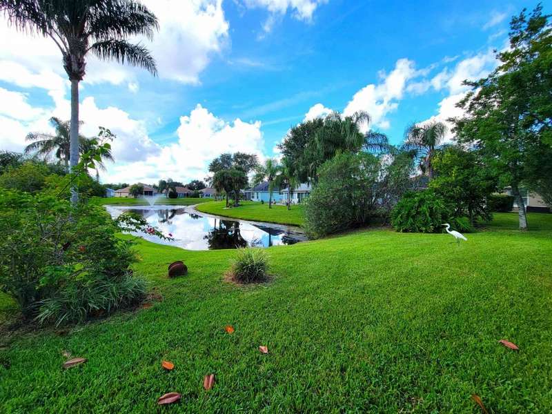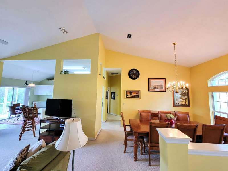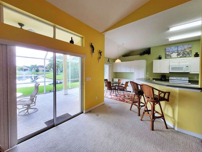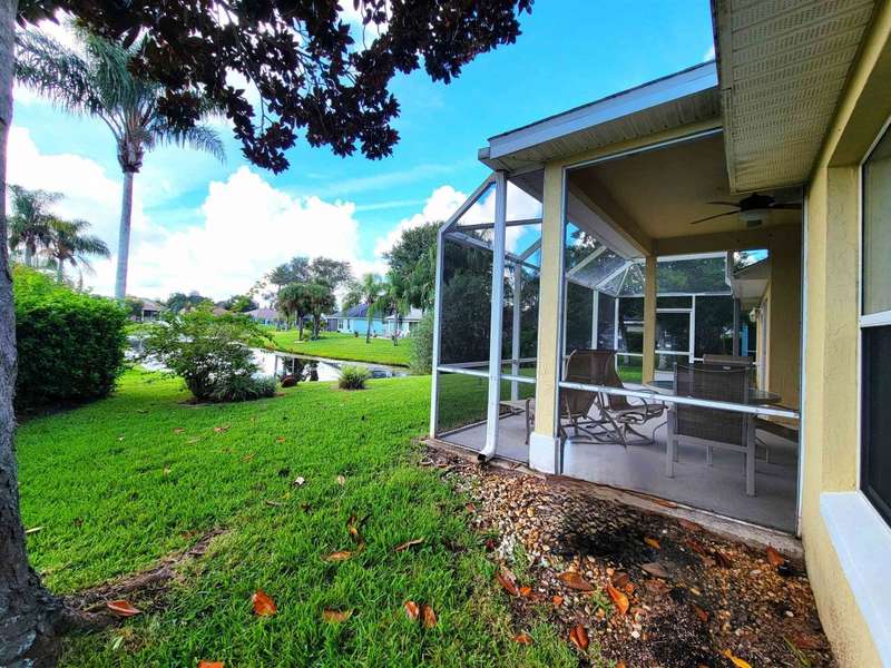 This is your chance to live on the Island in the quiet, cozy neighborhood of The Commodores Club! Enjoy the Florida lifestyle out on the screened in patio while over looking the pond and fountain. This home is ready to make yours! Enjoy the days where you can open the front door to the breezes with the glass storm door and let the breeze pass through both sliding doors that lead to the screened in lanai. With a formal dining, and breakfast nook, there is plenty of space to invite friends over to entertain whether that be indoors or out. The vaulted ceilings give this home an open feel which you will be sure to appreciate. The owners suite has double sinks, corner walk in shower, water closet and a generous closet. All furnishings from decor to furniture is available to purchase. The home comes with all appliances including washer and dryer which are located in their own dedicated laundry room. Make your appointment to see this home today!