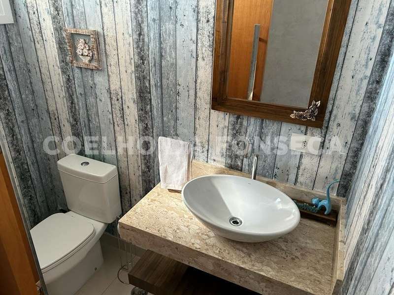 - Suite principal com porta balcão, closet, ar-condicionado quente/frio, painel de cabeceira, painel com rack para TV e gabinete nos banheiros;