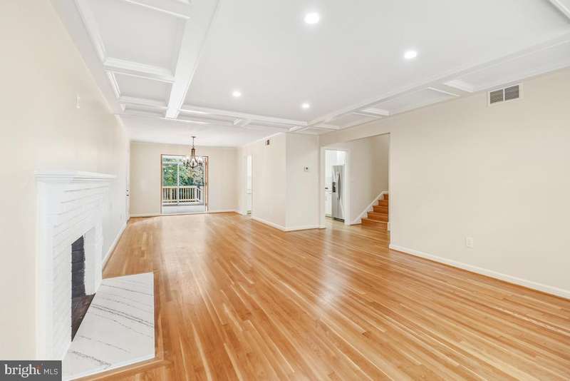 Renovated from top to bottom, this 4-level split home offers almost 3400 sf of living space and a very flexible floorplan! The gracious foyer leads to a massive LR with a gorgeous coffered ceiling and a wood-burning FP! The DR opens to a glass-enclosed sunroom with a cathedral ceiling and terrific view of the treed backyard. The sunroom in turn leads to a new deck and patio, and the flow of the main level makes entertaining a breeze! There are 3 spacious BR's upstairs, 2 new baths, and gorgeous hardwood floors on 2 levels! Lower level one includes a FR, new 3rd bath, bar area, and an over-sized garage with lots of storage. The 4th level includes a BR, a den plus an additional rec room with a separate entrance! The possibilities are endless (in-law suite, home office, and more!) Other features include a new 2-zone HVAC system, newer roof, and a renovated kitchen with gorgeous SS appliances, quartz countertops and undermount lighting! All of these upgrades and today's lower interest rates make this home an unbeatable value in today's market!