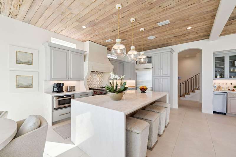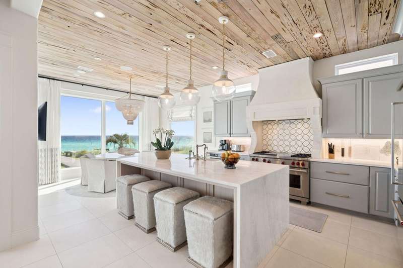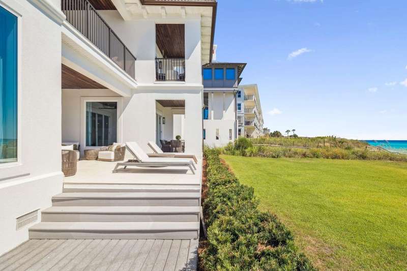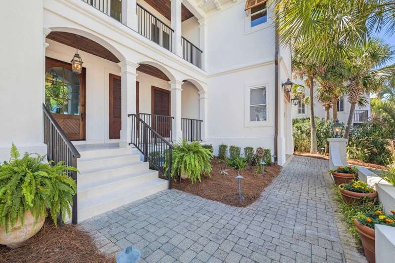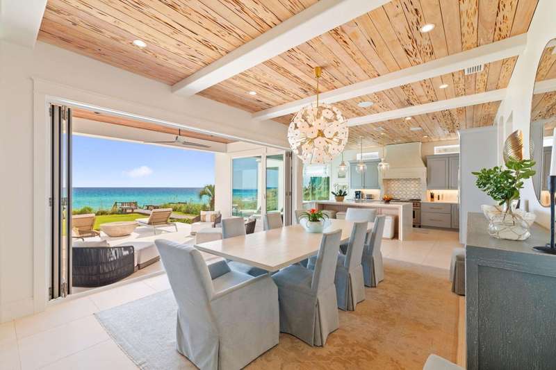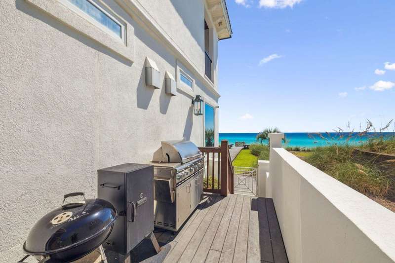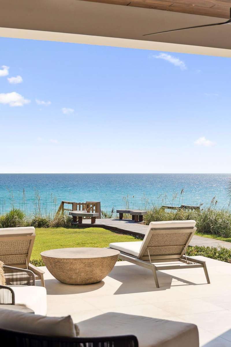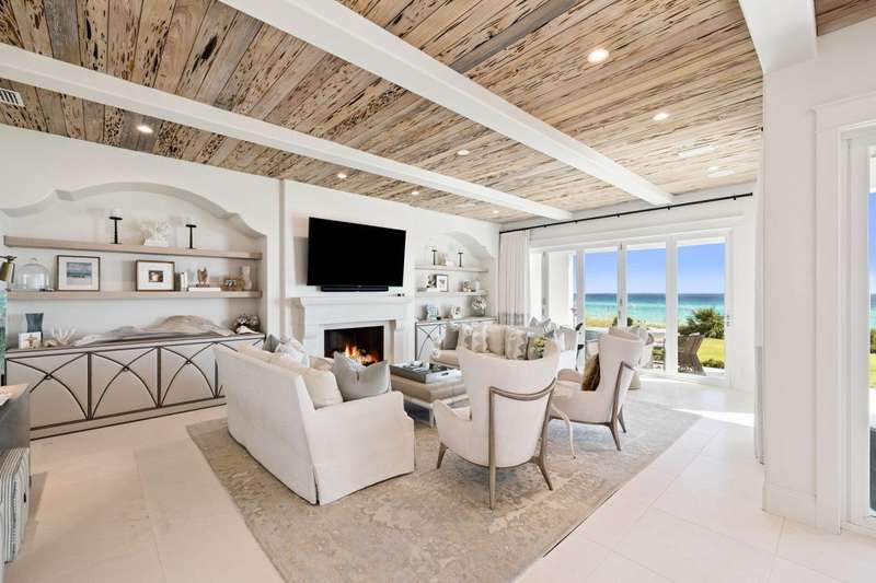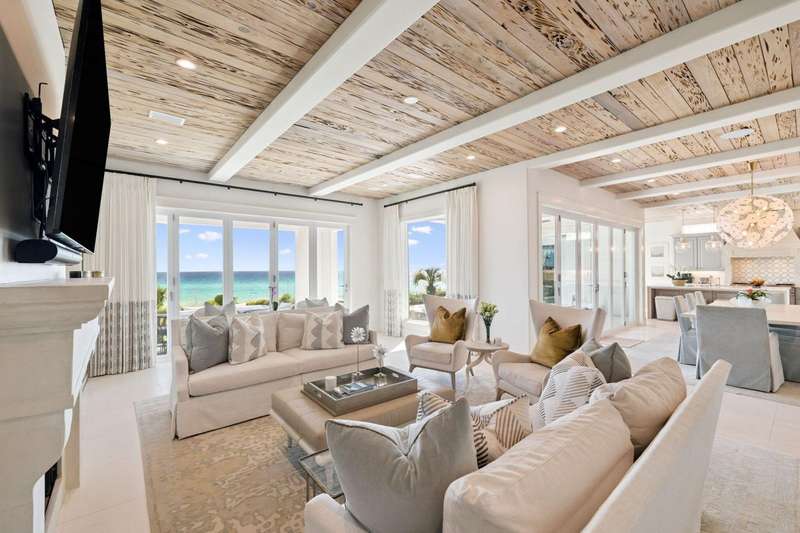 Forever Gulf views define this beautifully updated residence in the gated community of White Cliffs. Designed with an open and inviting floor plan, the first level welcomes you with a custom walk-in wine cooler and flows seamlessly into a fully renovated living area. Highlights include a striking pecky cypress ceiling, new custom cabinetry, and expansive bi-fold doors that open to multiple covered porches overlooking the beach. A reimagined fireplace with a precast surround and gas balls creates a stunning focal point. This level also features a private ensuite bedroom, perfect for guests.Ascending by staircase or the new elevator, the second floor unveils an additional living space with French-style doors that open to both north- and south-facing balconies. The primary suite offers a private retreat with a renovated spa-inspired bath featuring a walk-through closet, double vanity, soaking tub, and separate shower. French doors lead to the suite's own Gulf-front balcony, ideal for enjoying breathtaking sunsets.Three additional guest suites each include private baths, with the southern suite enjoying its own balcony. Blending coastal charm with modern luxury, this Gulf-front home provides a rare opportunity to experience beachside living at its finest.The Village of White Cliffs is an exclusive gated community offering a private pool, tennis court, and clubhouse, all set among some of the highest elevations along the Gulf of Mexico. Ideally situated along Scenic Highway 30A in Blue Mountain Beach, this sought-after location provides easy access to boutique shops, coastal dining, and the vibrant 30A lifestyle.
