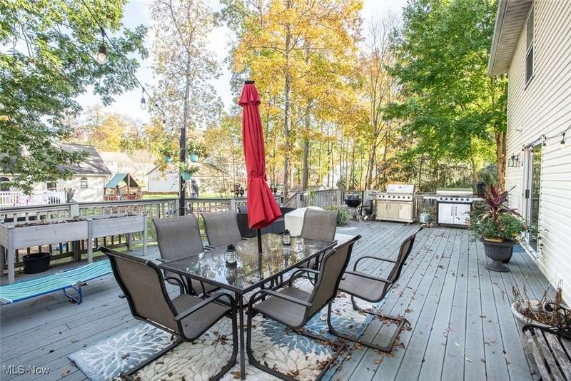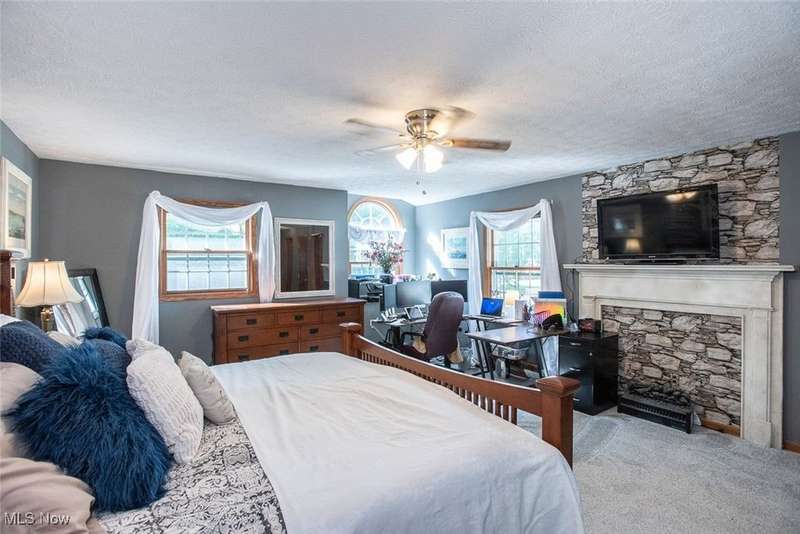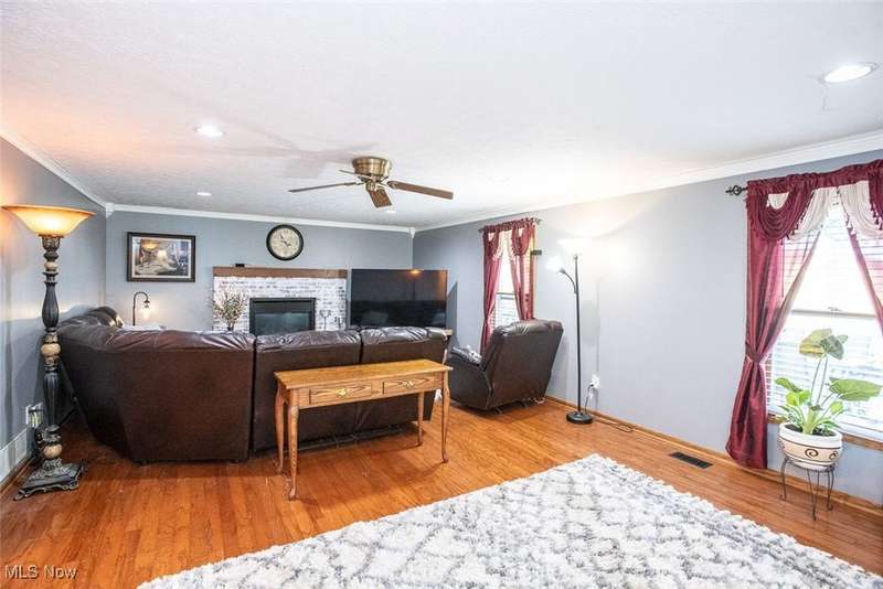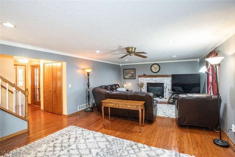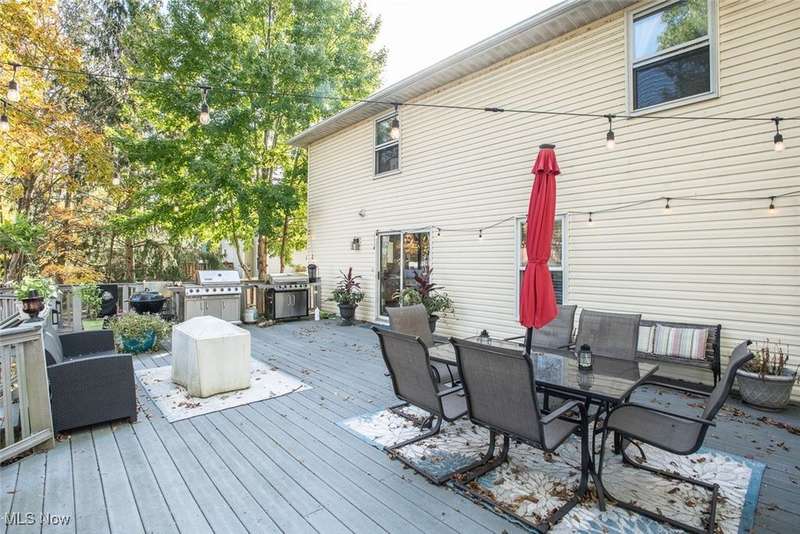 This gorgeous colonial in Medina's desirable Forest Meadows neighborhood offers the perfect blend of charm, space, and modern updates in an unbeatable location. The heart of the home is the spacious kitchen, featuring white cabinets, granite countertops, and a large center island?a perfect space for cooking, entertaining, or gathering with family. Hardwood floors flow through the dining and living rooms, where a beautiful fireplace adds warmth and character. The first floor also includes a versatile fifth bedroom, ideal for guests or a home office, and the convenience of first-floor laundry makes daily living a breeze. Upstairs, you'll find new carpeting and generous walk-in closets in each bedroom, including a primary suite with two walk-ins, a jetted soaking tub, and a cozy faux fireplace/mantle. The guest bath has been refreshed with new flooring for a bright, updated feel. The finished basement offers a spacious area perfect for a large rec room, home theater or game space. Outdoor living is just as inviting, with a very large deck overlooking the completely fenced backyard with a newer six-foot chain-link fence?perfect for entertaining, pets, or play. A cozy front porch offers the perfect spot to relax and enjoy the neighborhood charm. Additional highlights include newer garage doors, built-in storage in the garage, and a newer washer and dryer. This Forest Meadows beauty truly combines comfort, character, and convenience in one exceptional home.