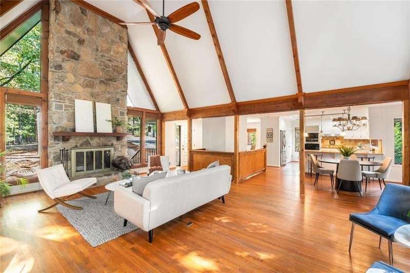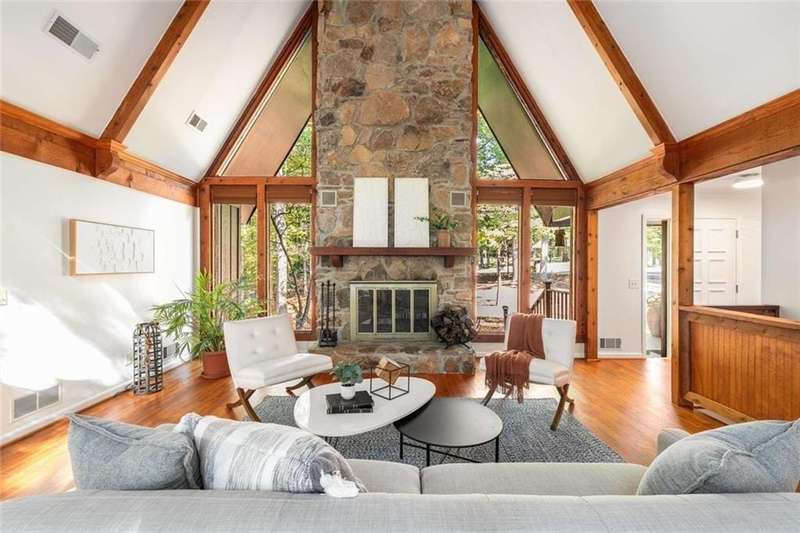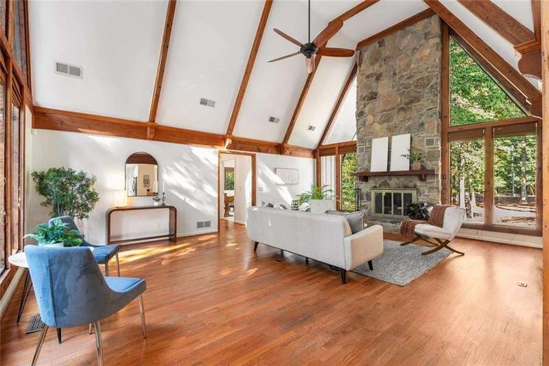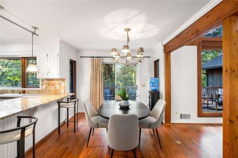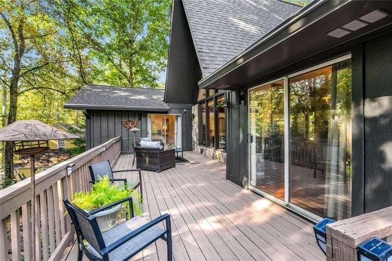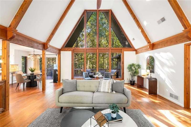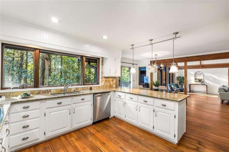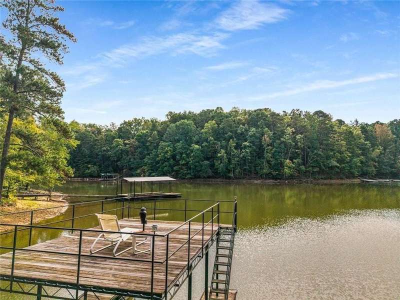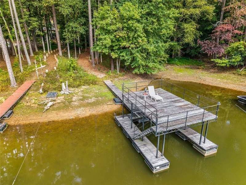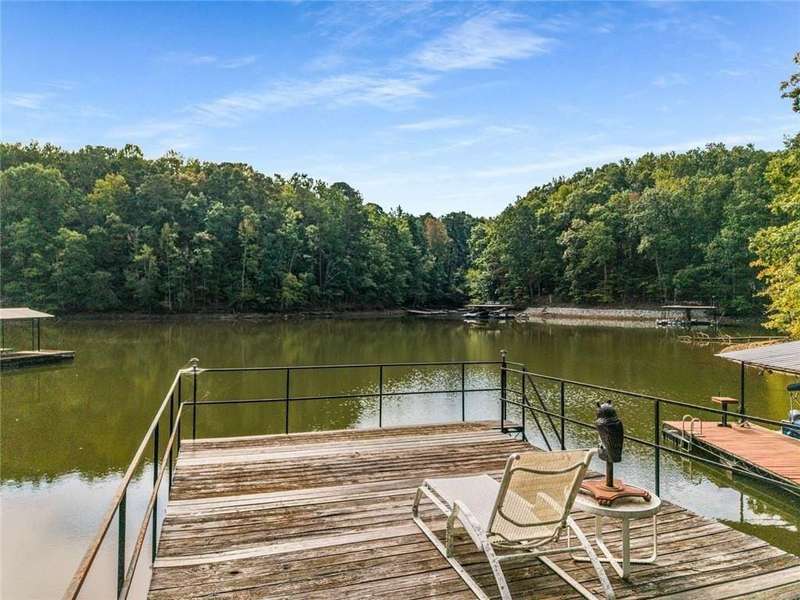 Escape to Lake Lanier in this charming A-Frame waterfront home, complete with a covered slip and private dock, perfectly situated on the desirable Atlanta side of the lakejust around the corner from Baldridge Marina and ideal for quick weekend getaways or full-time lakeside living.Step inside to the main level and be greeted by soaring two-story ceilings and dramatic windows that flood the family room with natural light, creating a bright and airy atmosphere. Off the foyer, the dining room flows seamlessly into the updated kitchen, featuring new appliances and a breakfast area with direct access to the deck. On the opposite side of the family room, the spacious owners suite also opens to the deck, while a secondary bedroom and full bathroom complete the main level.The terrace level adds another generous living space with access to the two-car garage, plus two additional bedrooms and a full bathperfect for family, guests, or flexible living arrangements.Freshly painted inside and out and topped with a brand-new roof, this home combines modern updates with classic lakefront charm. Nestled on a quiet cul-de-sac with quick access from Atlanta, it offers the perfect balance of convenience, recreation, and relaxation.