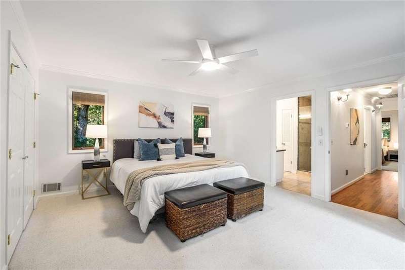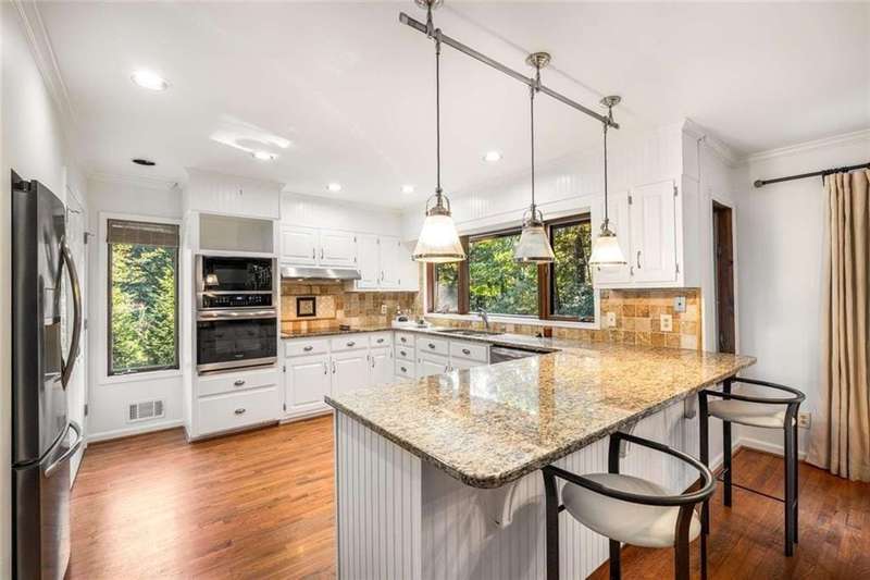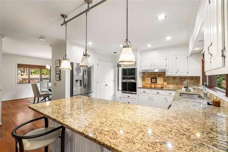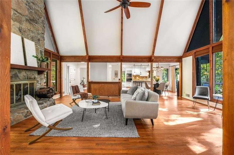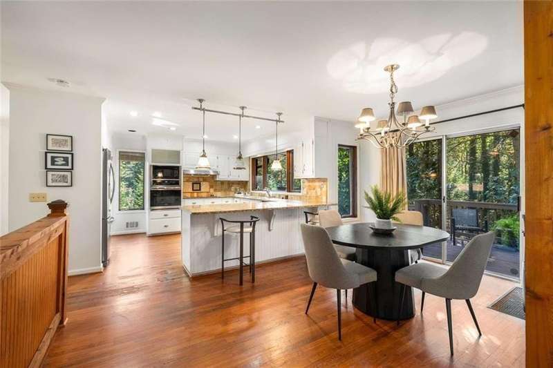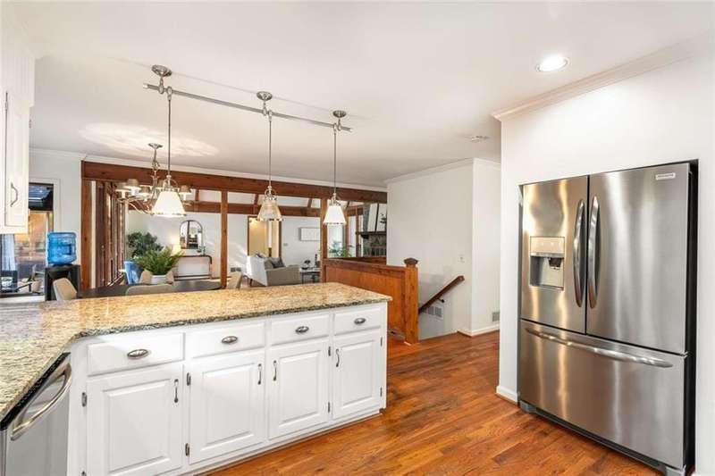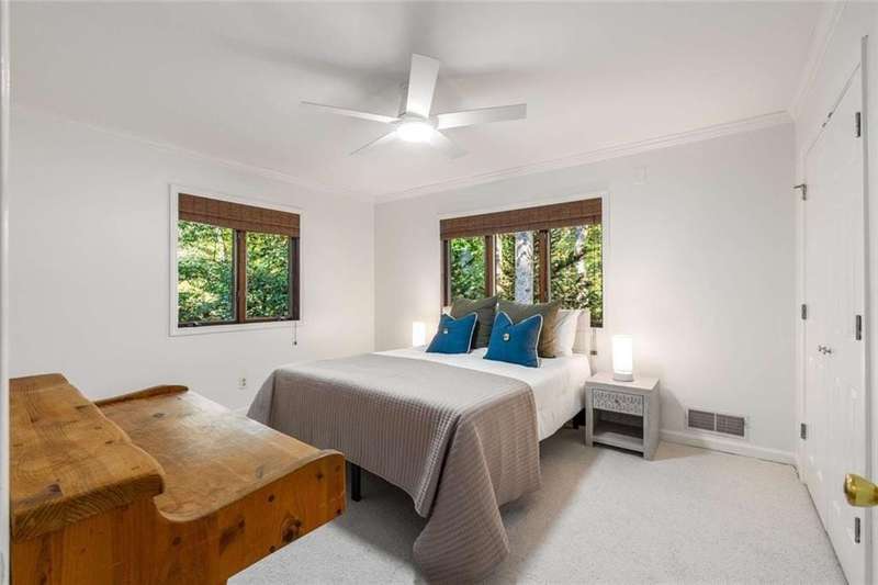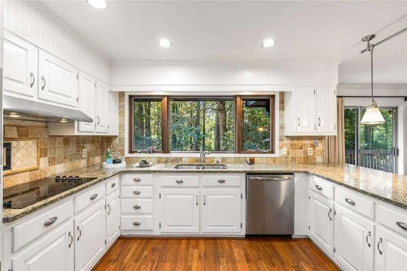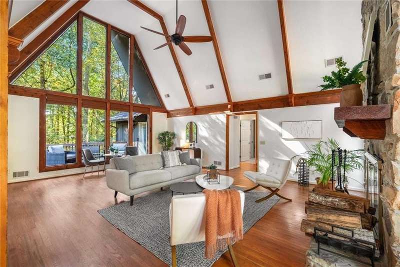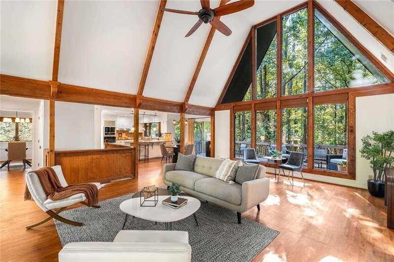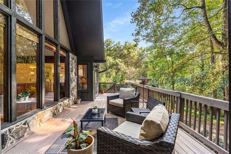 Escape to Lake Lanier in this charming A-Frame waterfront home, complete with a covered slip and private dock, perfectly situated on the desirable Atlanta side of the lakejust around the corner from Baldridge Marina and ideal for quick weekend getaways or full-time lakeside living.Step inside to the main level and be greeted by soaring two-story ceilings and dramatic windows that flood the family room with natural light, creating a bright and airy atmosphere. Off the foyer, the dining room flows seamlessly into the updated kitchen, featuring new appliances and a breakfast area with direct access to the deck. On the opposite side of the family room, the spacious owners suite also opens to the deck, while a secondary bedroom and full bathroom complete the main level.The terrace level adds another generous living space with access to the two-car garage, plus two additional bedrooms and a full bathperfect for family, guests, or flexible living arrangements.Freshly painted inside and out and topped with a brand-new roof, this home combines modern updates with classic lakefront charm. Nestled on a quiet cul-de-sac with quick access from Atlanta, it offers the perfect balance of convenience, recreation, and relaxation.