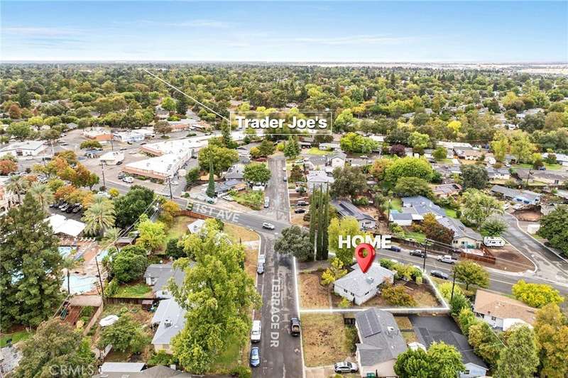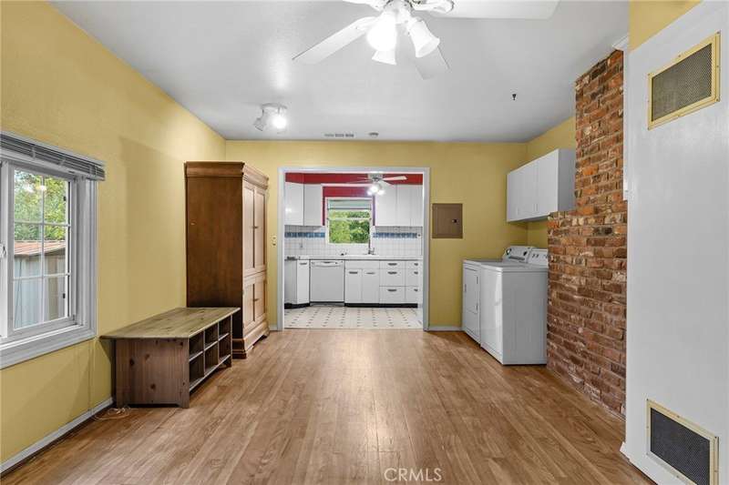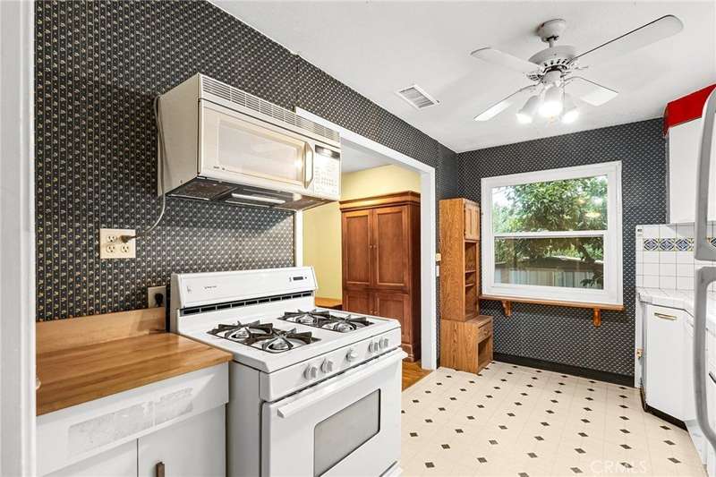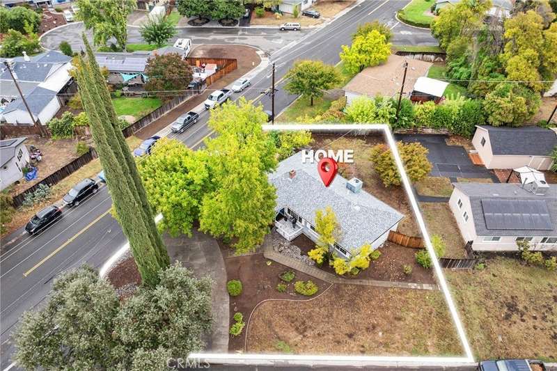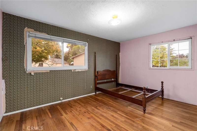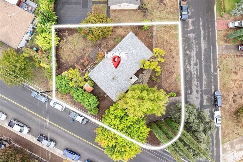 This home is ready for someone with vision to bring it to life! Situated on a large corner lot with a circular driveway and beautiful mature landscaping, this property offers great curb appeal with its charming white shutters and established trees. Inside, you’ll find a spacious floor plan featuring a large living room with a brick fireplace and space for a dining area. The kitchen has a fun retro vibe with plenty of room to reimagine your dream space. Just off the kitchen is an additional room that would make a wonderful formal dining area, family room, or even a home office. On the opposite side of the home are two bedrooms with hardwood floors and a full bathroom. The huge backyard offers endless opportunities—create garden beds, add a play area, or design your ideal outdoor entertaining space. Located near In Motion Fitness, schools, and parks, this home combines a prime location, wonderful lot and a great layout. With a little updating, it will truly shine!