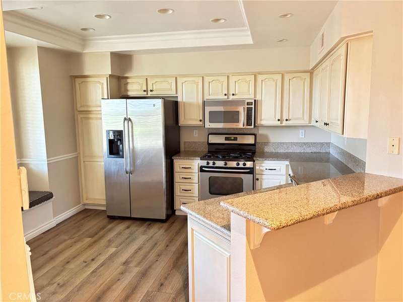Occupying a nice corner in a serene tree-line setting of the Vineyards community, this beautiful townhome offers both the luxurious living and views of the nature. 3 bedrooms, 2.5 baths, 2 car garage with a direct access to the unit. Bright and inviting, the living room boasts high ceilings, a fireplace, and a glass slider to patio. The upgraded kitchen includes granite countertops, antique white cabinetry, all stainless steel appliances, bar sitting, and a lovely built-in bench below the kitchen window. Well appointed master suite with high ceiling, a walk-in closet, ensuite bath with dual sinks, newer shower doors, and skylight. Beautiful ceiling fan on the hall upstairs, controlled by a remote. One secondary bedroom has mirror closet and the other one has a cute built-in bookshelves by the closet. Individual laundry room with storage cabinets. Newer water heater. Newer paint in the living room, dining room, powder room, and the master bath/walk-in closet. Newer flooring, including the beautiful luxury planks in both master bath and hall bath and entire downstairs. Whole house re-piping done in 2022. A fully fenced patio--plenty of room for your patio furniture and flower pots! Beautiful views from every room of the home! A brand new washer is included! Steps to the tot playground and gazebo. Enjoy the HOA pool, spa, and picnic areas. Award winning schools. Within walking distance to shops, dining, and movie theaters. Short distance to parks and Whiting Ranch Wilderness Park for hiking and mountain biking. Close to the 241 toll road. Short drive to the Irvine Spectrum. Small pets are considered! A must see! Don't miss out!