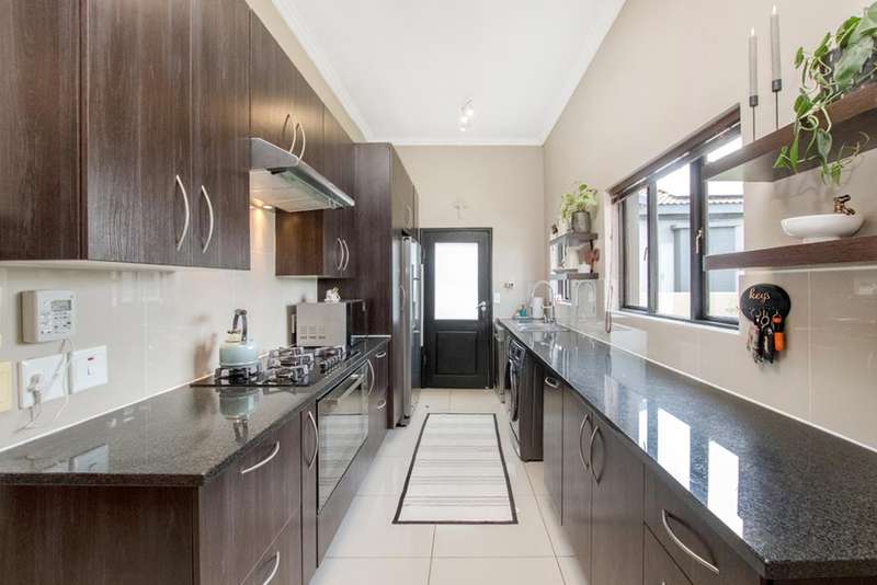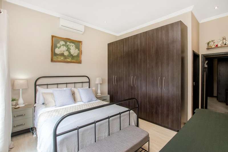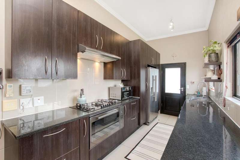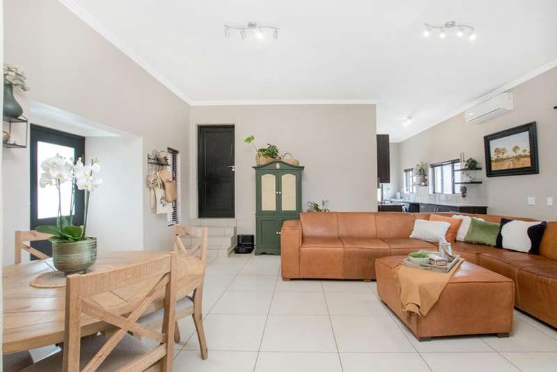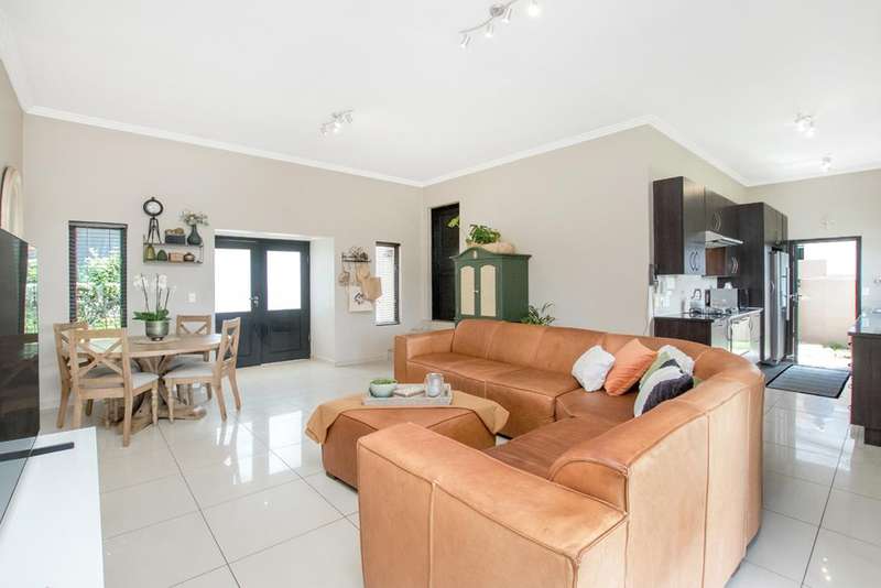 A happy home... Move-in ready, this charming 3-bedroom family home offers a spacious garden and a refreshing pool?Çöperfect for relaxed living and effortless entertaining. The open-plan living areas, featuring impressive 3m-high ceilings, include a dining room and lounge that flow seamlessly onto a covered patio with a built-in braai and sunny garden. A contemporary kitchen offers a gas hob and ample cupboard space, with a guest cloakroom completing the living area. The home features 3 spacious, private bedrooms. The main bedroom enjoys its own full en-suite bathroom, while the additional full bathroom is shared by the remaining bedrooms. Features include: ?Çó Airconditioner ?Çó Double automated garage plus an additional parking bay ?Çó Sparkling pool and landscaped, irrigated garden ?Çó Gas geyser and gas hob