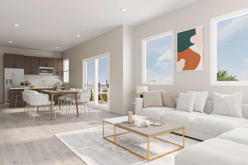 Welcome to the Telus Condos, downtowns newest property featuring single level living. Being built right next to the planned community center with resort like pool and fitness center. This 2nd level, 2 bed, 2 bath corner unit features amazing windows, a large kitchen open to the dining area and living room. The large primary bedroom has a walk in closet & bath with walk in tile shower. This home also has a dedicated laundry room, drop zone, 1 car attached garage and oversized balcony. Telus is within walking distance of Grays Lake w/access to bike trails & water trails! 6 year tax abatement! All kitchen appliances and W/D are included. Samples of finish packages available. Photos are renderings of proposed finishes.