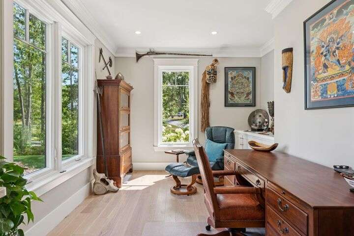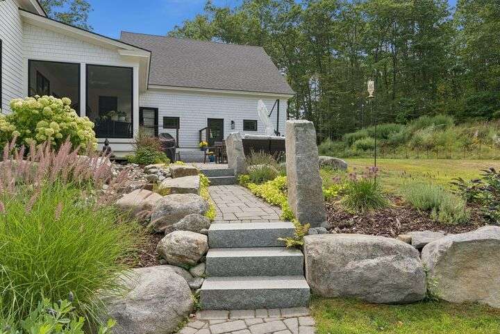 Welcome to this exceptional, custom built, extended cape cod style home exquisitely sited on 2.4 manicured acres. Enjoy coffee on the front porch as the sun rises in the morning or relax on the stone patio listening to the waterfall in the evening. Beautifully designed hardscape areas create a perfect backdrop for entertaining or simply enjoying time at home. At the heart of this elegant home is the stunning custom kitchen with oversized island and countertops in stunning quartzite stone. Cabinetry extends to the ceiling offering maximum storage and appliances are top of the line stainless steel. The kitchen flows beautifully into the 2 story family room complete with a dramatic stone fireplace and beautiful panelling making for a sophisticated, yet cozy spot for entertaining family and friends. The main level boasts the private, spa like primary suite offering soaking tub, large tiled shower and generously sized walk in closet. Across the hall is a lovely guest or in law suite. The second floor loft area is a perfect reading nook or office space. Two more bedrooms with ensuite baths and a very large unfinished space above the garage round out the upstairs space. The spacious lower level offers a full daylight, walk out design with potential uses as a home gym, family room or recreation area. For the outdoor enthusiasts, full access to the Knights Pond Preserve trail system and all the 212 acres has to offer is just steps away. Whether hiking, mountain biking, snow shoeing or x country skiing, this beautiful outdoor playground connects to an even larger trail network to explore and use year round. With timeless, elegant design, extensive landscaping and stunning scenic views, this private oasis can be your very own daily retreat.