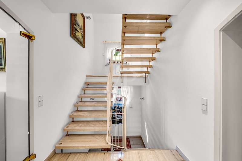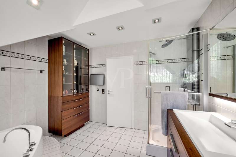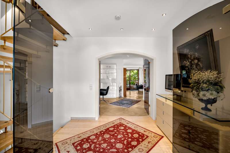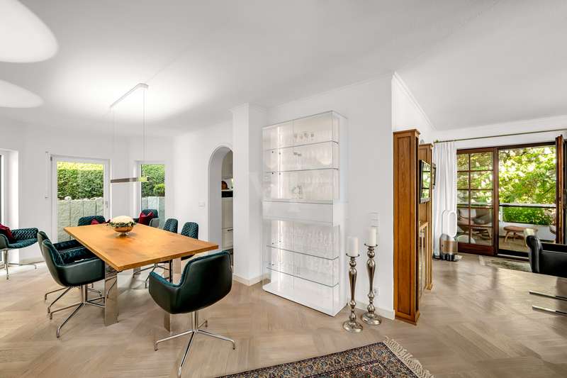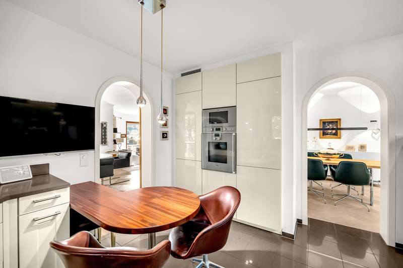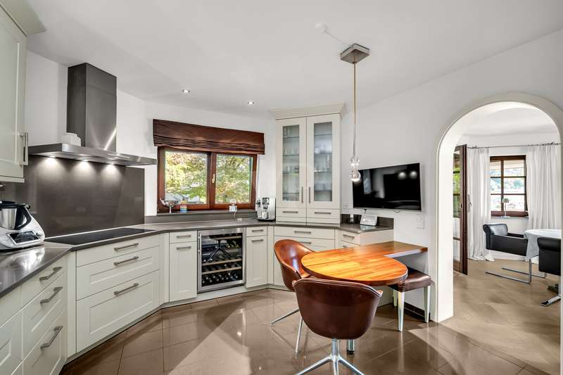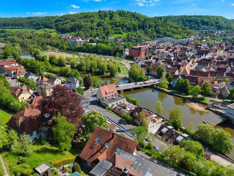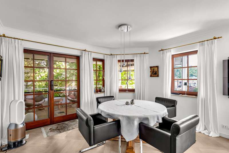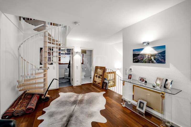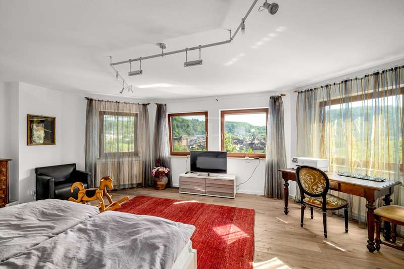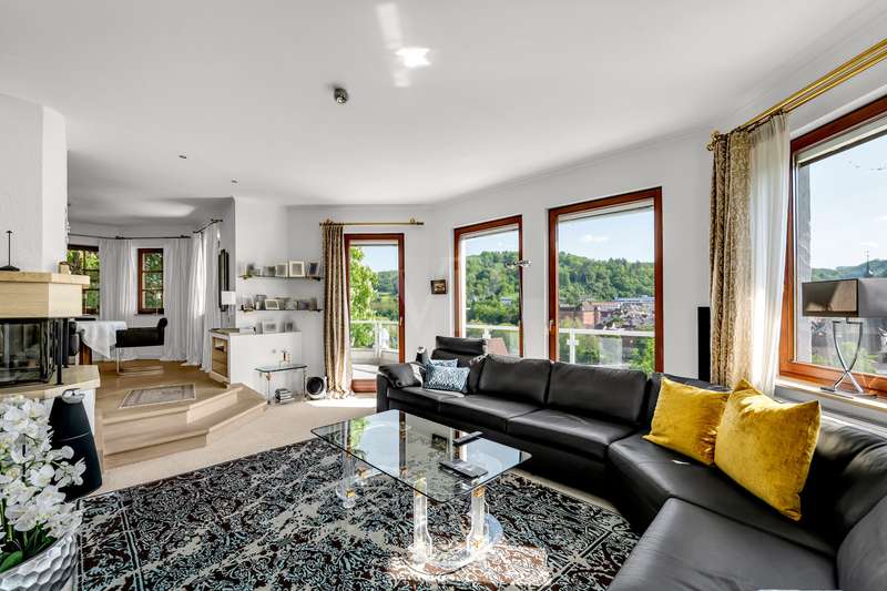 For sale is an exceptionally well-kept detached house that was built in 1990 and has been continuously modernized since then. Nestled in one of the most sought-after residential areas of Künzelsau, this property is situated on a generous plot of approx. 786 m² with an impressive living space of approx. 392 m² - an ideal home for families with high demands on space, comfort and quality. You can feel the special atmosphere as soon as you enter the house: high-quality materials, a well thought-out room layout and a light-flooded living ambience characterize the overall picture. The spacious living and dining area on the first floor forms the heart of the house - complemented by a cozy fireplace and direct access to the large, heated terrace with incomparable views over the Kocher river and the town of Künzelsau. The high-quality fitted kitchen from 2014 impresses with appliances from the premium brands Gaggenau and Miele and makes the heart of every cooking enthusiast beat faster. Separate guest WCs on all floors and elegant "Axor" fittings in all bathrooms underline the high standard of fittings. Spacious bedrooms, some with walk-in dressing rooms, await you on the upper floor. The master bathroom is equipped with underfloor heating - for maximum comfort. The top floor boasts an impressive, maisonette-style teenage bedroom - a very special retreat for the next generation. The basement offers additional utility and living space: A fully-fledged granny apartment, which can alternatively be used as an office for your business, a wellness area with KLAFS sauna, a bathroom, a further terrace as well as practical cellar rooms and the boiler and utility room complete the space on offer. Thanks to separate staircase access (stairwell), the areas remain clearly separated if desired. Nothing has been spared in the outdoor area either: the modernized gardens with garden shed, automatic irrigation system and outdoor shower are perfectly maintained and create an idyllic living environment. Surrounding balconies and terraces as well as a recently built outdoor seating area provide sunny spots at any time of day. A single garage, a double garage and an outdoor parking space are available for your vehicles. An existing elevator shaft also offers the option of a freight or "stamp elevator" - a practical investment for the future. Conclusion: This property is much more than a home - it is a well thought-out lifestyle concept for discerning buyers who value quality, comfort, location and long-term prospects. The VON POLL IMMOBILIEN team looks forward to hearing from you and welcomes you to a personal viewing on site.