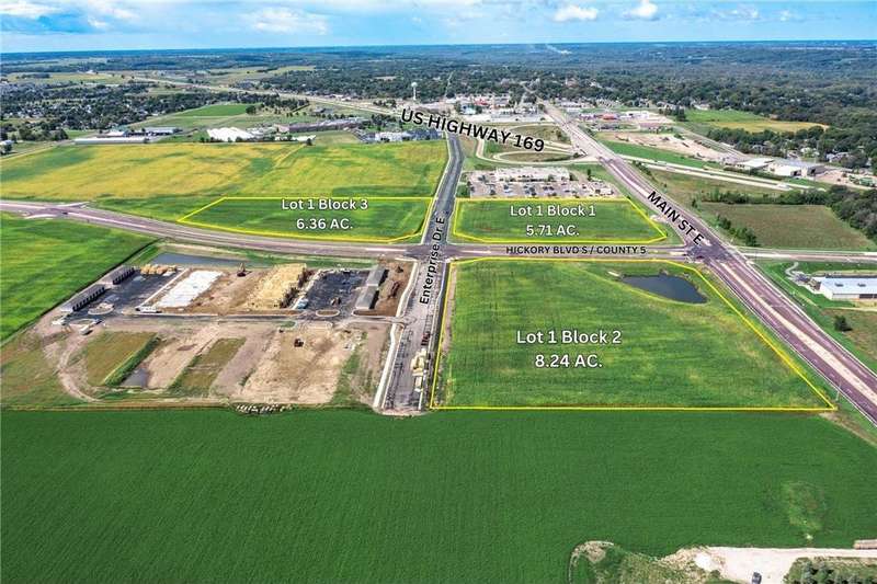 Highly visible commercial development opportunity in growing Belle Plaine featuring 5.71-acres of "shovel ready" platted land known as Block 1 of the Buesgens Commercial Center. Zoned for mixed commercial and/or medium/high density housing. Conveniently located near US Hwy 169 and Main Street interchange and adjoins Coborn•s Grocery Store parking lot. This property can be subdivided to fit a buyers needs. No building restrictions. Additional land available nearby.