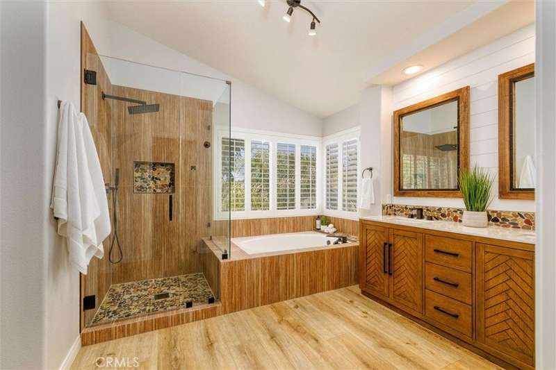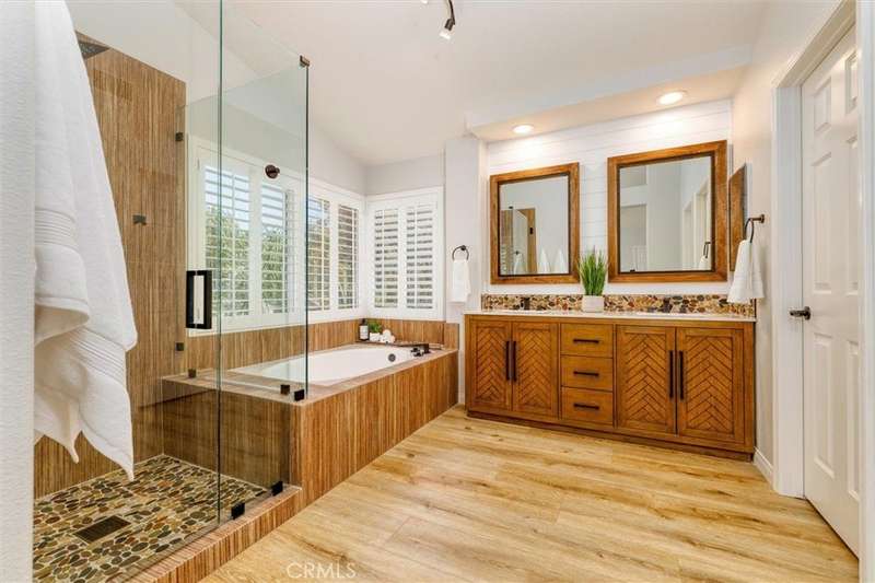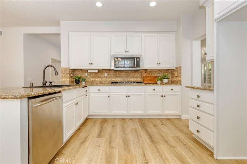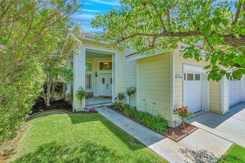 Step into this stunningly remodeled Warmington Plan I with 4 bedrooms, 2.3/4 bathrooms and a bonus room off the Primary bedroom, perfect for a baby nursery or home office. Located in the highly sought after area of Valencia Northbridge, on a quiet cul-de-sac with quick access to the beautiful paseos leading to the community pools and tennis courts, Helmer’s Park and award winning Charles Helmers Elementary. Relax in your low maintenance backyard which was designed for entertaining with a built-in bar, BBQ, refrigerator, fire pit and lighting. In addition to palm trees, there is an apricot and apple tree for you to harvest fruit from each year. The backyard is also pre-wired for a hot tub. Sellers have recently updated the home with modern finishes including fresh paint inside and out, new flooring, updated bathrooms, new stove top, microwave and water heater. The large three car garage has a new opener and offers an over abundance of storage with custom cabinetry, built-in shelving and a loft for larger items. This beautiful home is move-in ready and waiting for you to enjoy all of the recent upgrades and wonderful community amenities. Welcome home to 23609 Wilmington Court!