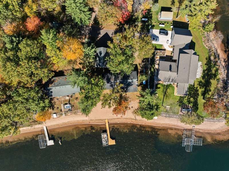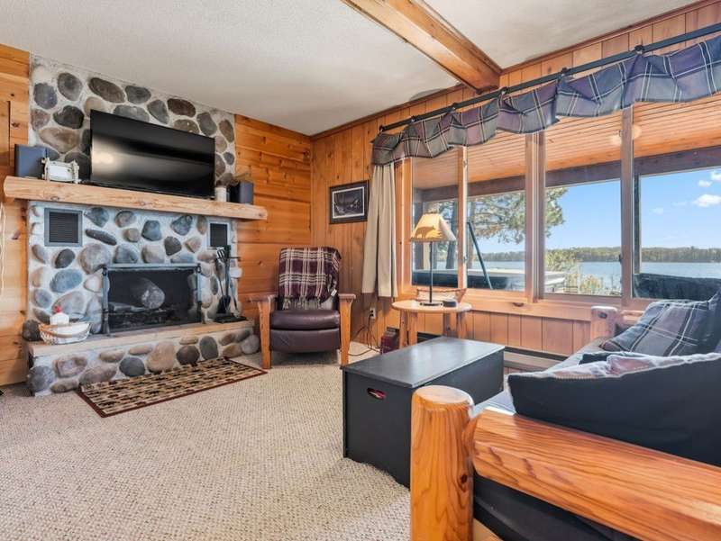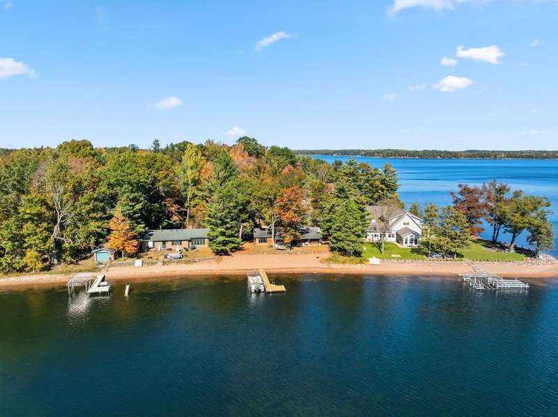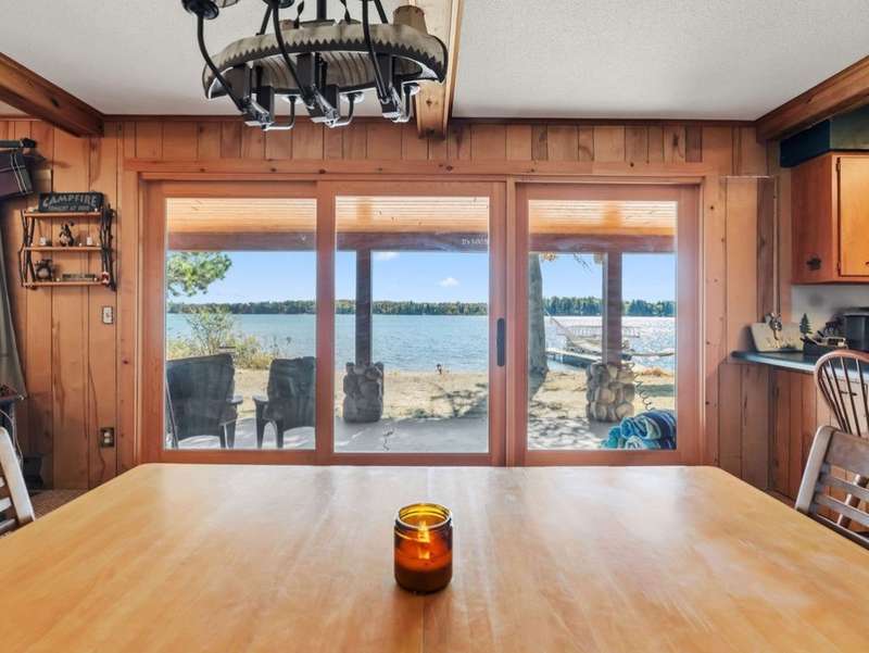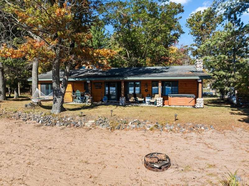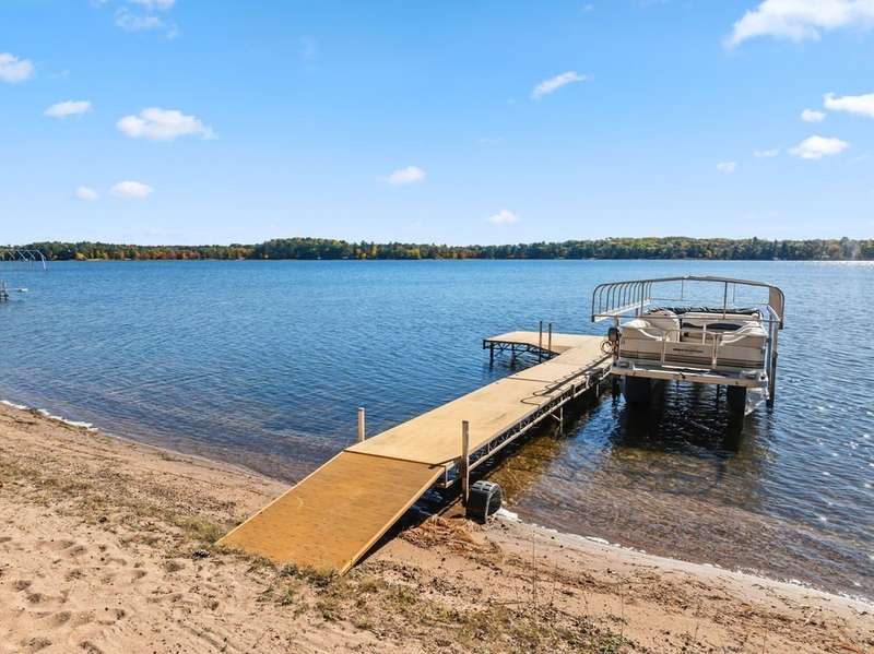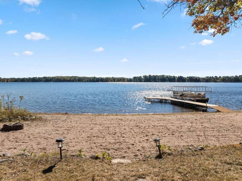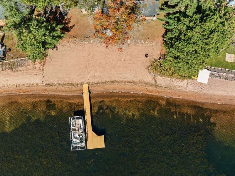 Don't miss this once-in-a-lifetime opportunity to own a charming cabin on a level lot with an amazing sandy beach on prestigious North Sand Lake-celebrated for its crystal-clear waters and 73-foot depth. Tucked away at the end of a quiet road, this property offers immense fun and recreation. Enjoy the best of all four seasons in this year-round playground-from summer swimming and boating to ice fishing in winter, with snowmobile trails nearby for endless all-weather adventure. Inside, cozy up to the wood-burning fireplace on cooler nights, soaking in the warmth and rustic charm of lakeside living. The property includes a 2-car garage with unfinished space above, ideal for a guest suite, studio, or office. An existing addition provides the perfect opportunity to create a spacious master suite or expanded living area. Bonus, this property comes completely turnkey with furnishings, Floe dock, pontoon and lift with canopy! Whether you're looking for a peaceful getaway, an outdoor enthusiast's paradise this rare find on North Sand Lake offers the perfect combination.