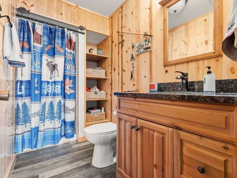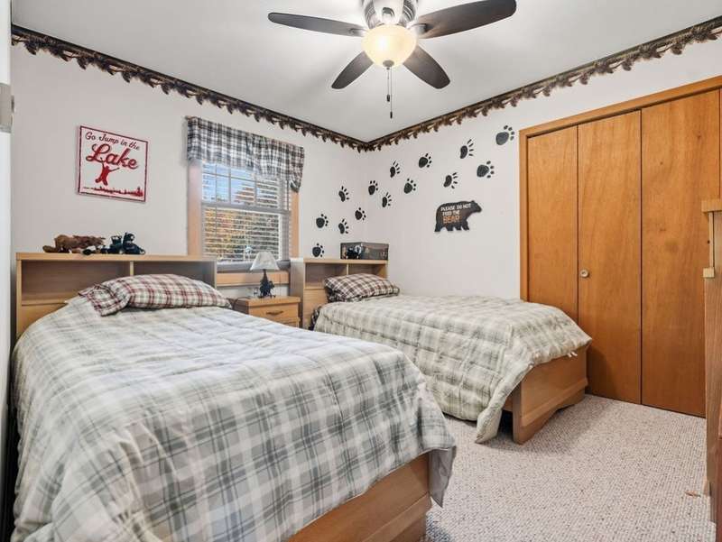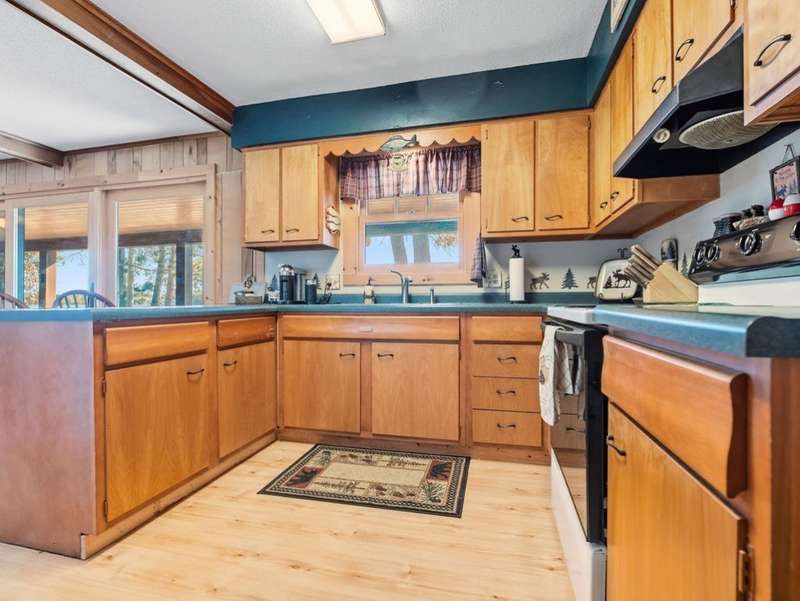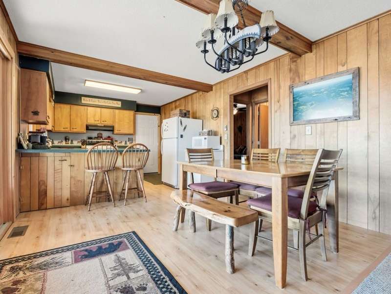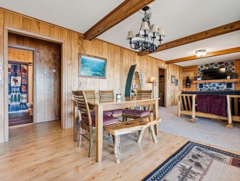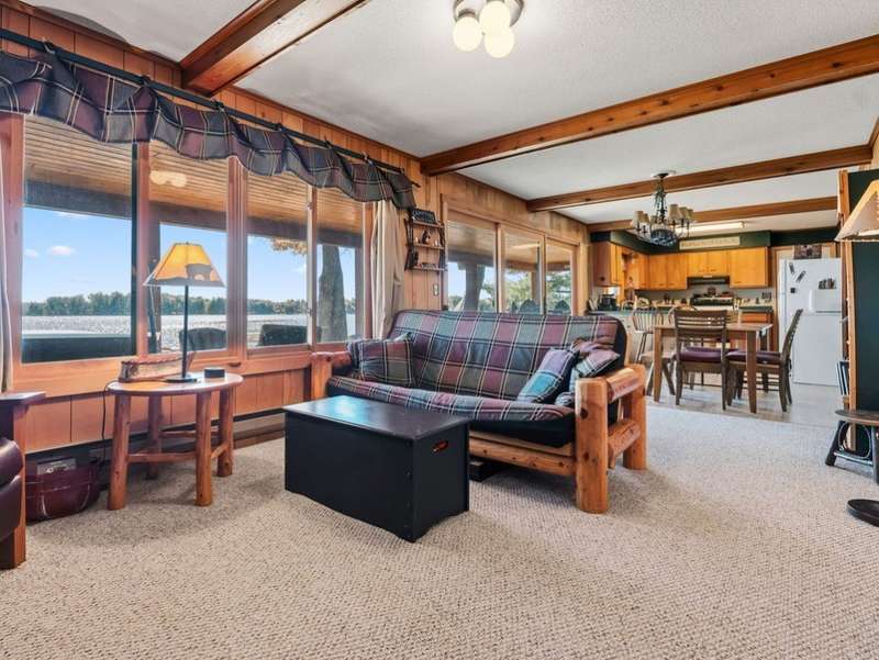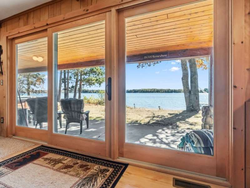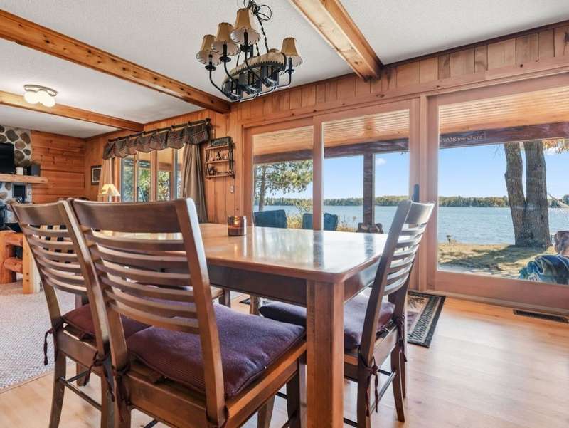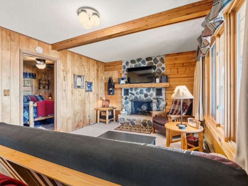 Don't miss this once-in-a-lifetime opportunity to own a charming cabin on a level lot with an amazing sandy beach on prestigious North Sand Lake-celebrated for its crystal-clear waters and 73-foot depth. Tucked away at the end of a quiet road, this property offers immense fun and recreation. Enjoy the best of all four seasons in this year-round playground-from summer swimming and boating to ice fishing in winter, with snowmobile trails nearby for endless all-weather adventure. Inside, cozy up to the wood-burning fireplace on cooler nights, soaking in the warmth and rustic charm of lakeside living. The property includes a 2-car garage with unfinished space above, ideal for a guest suite, studio, or office. An existing addition provides the perfect opportunity to create a spacious master suite or expanded living area. Bonus, this property comes completely turnkey with furnishings, Floe dock, pontoon and lift with canopy! Whether you're looking for a peaceful getaway, an outdoor enthusiast's paradise this rare find on North Sand Lake offers the perfect combination.