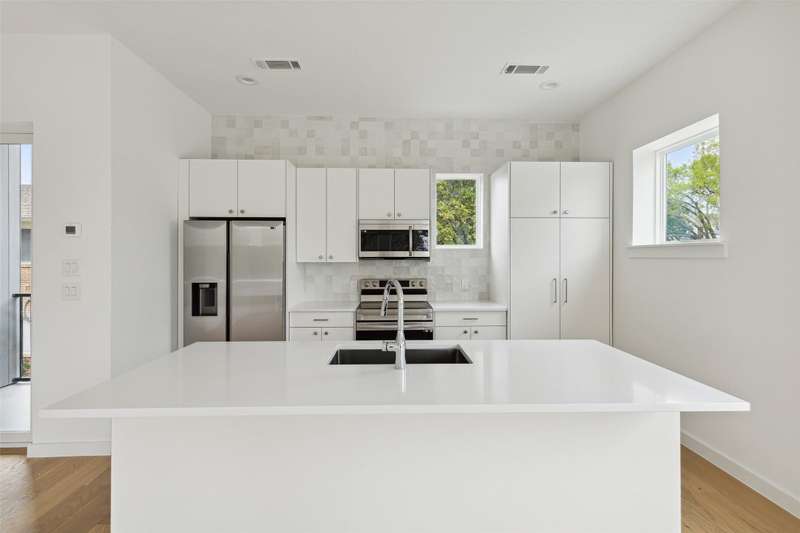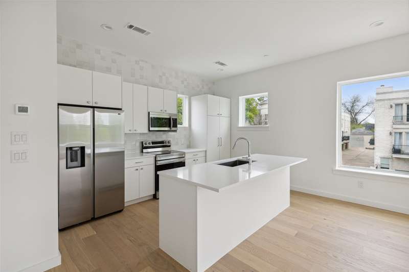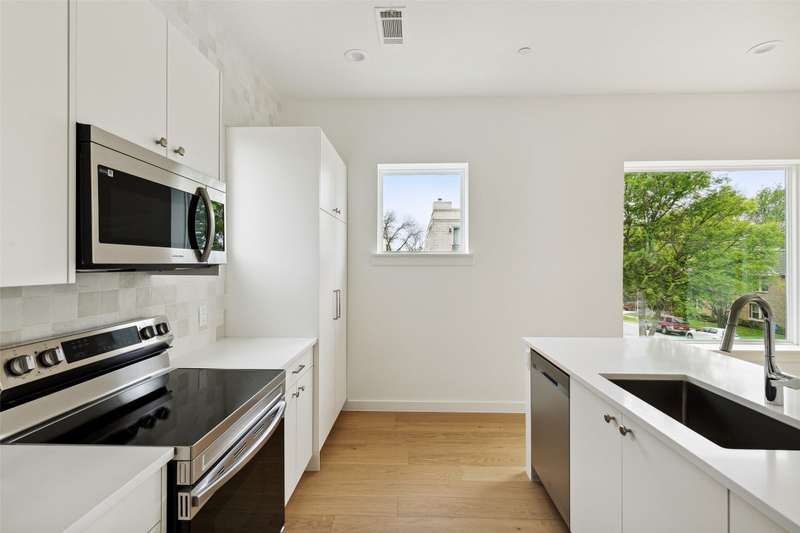 Stunning new construction modern townhomes. First floor attached garage to formal entry. Ascend to the open living area with oversized windows, abundant light, open kitchen with quartz counters & stainless steel appliances, plus powder bath. There are two bedrooms upstairs with private baths. Additional amenities: hallway washer-dryer, LED lighting, programmable thermostats.