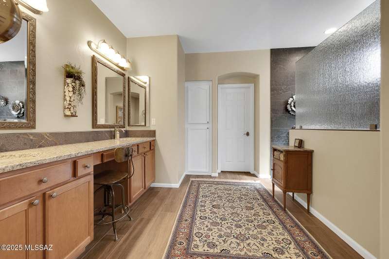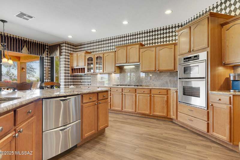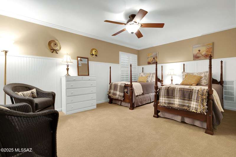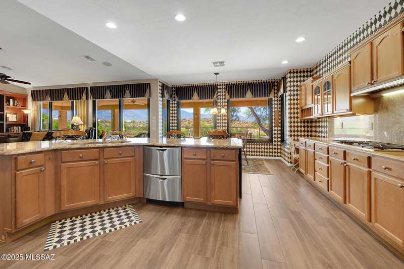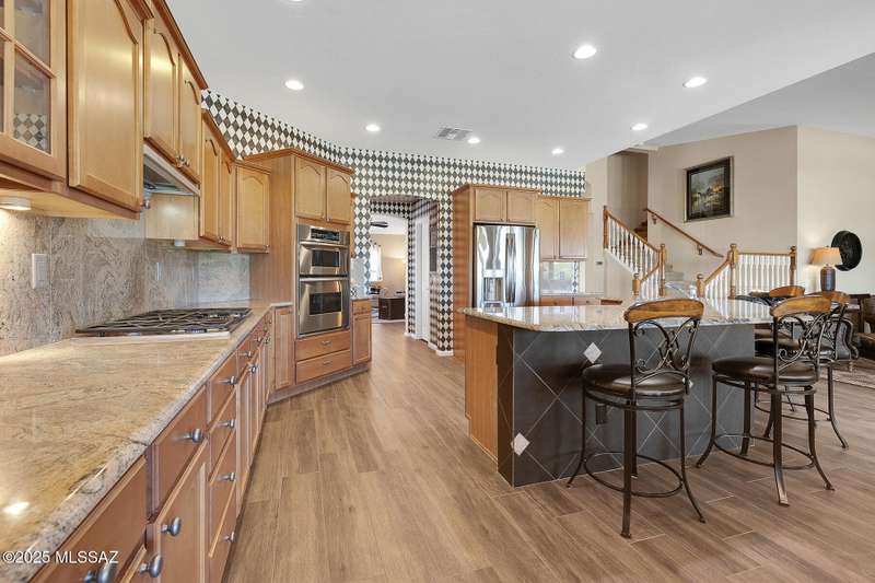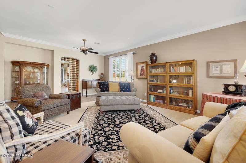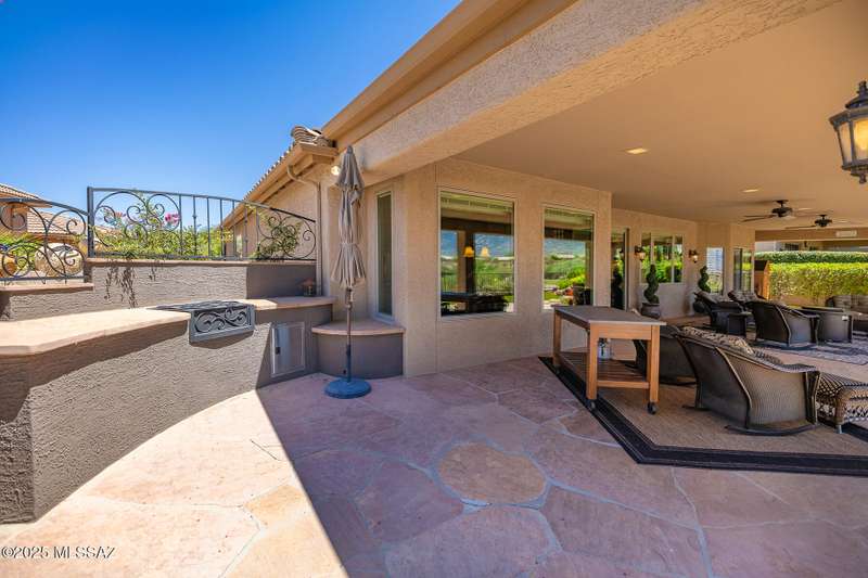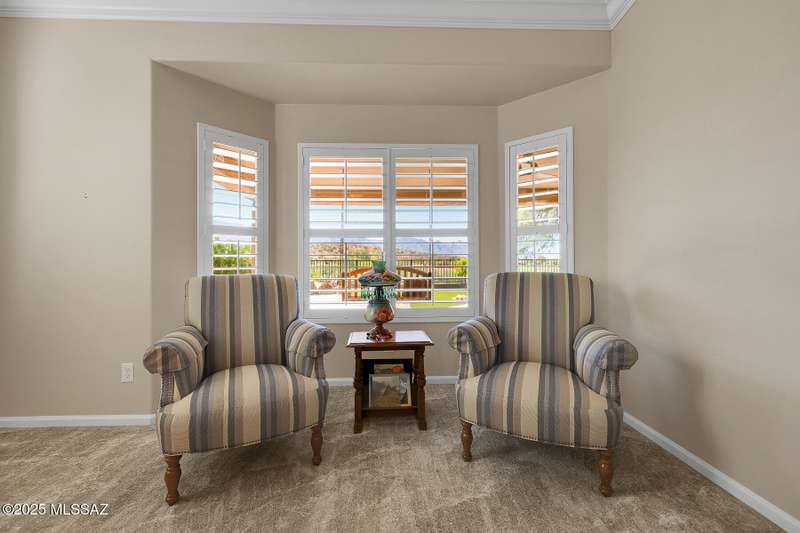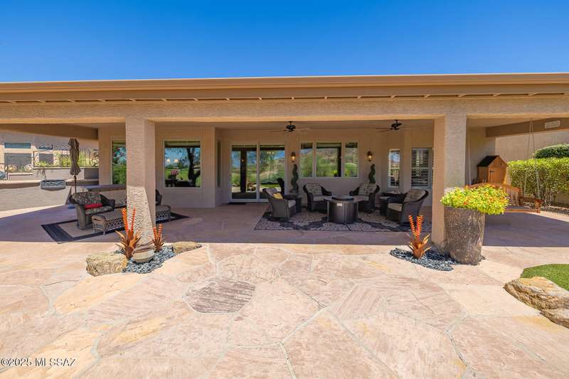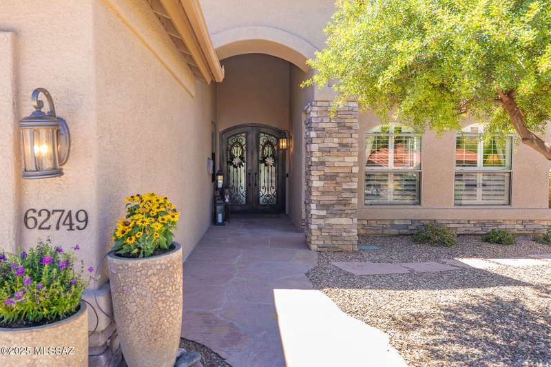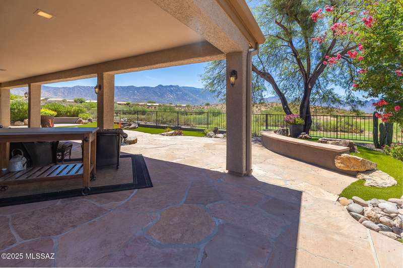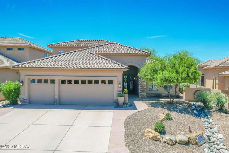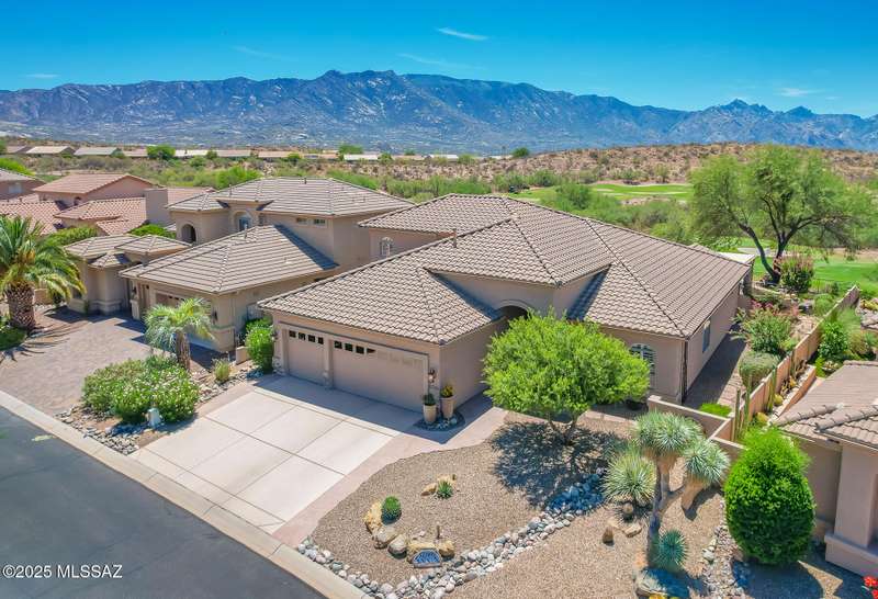SPECTACULAR DESERT LIVING at this stunning, well cared for and highly updated Durango plan in SaddleBrooke's 55+ Active Adult Community. Boasting panoramic golf course and mountain views, you'll enjoy 3,157 sq ft of formal & informal living space. Elegant Owner's suite, office/2nd bedroom and full hall bath on main level plus two additional guest rooms and full bath on upper level. Plantation shutters and granite countertops throughout plus woodgrain ceramic plank tile with plush carpet interspersed. Entertain in the formal living space off foyer or relax in the open concept gathering room at rear of home highlighted by wall-to-wall entertainment center, ceiling speakers, 8' wide patio slider and Pella view windows with built-in blinds. Gourmet kitchen hosts large, curved island with bar