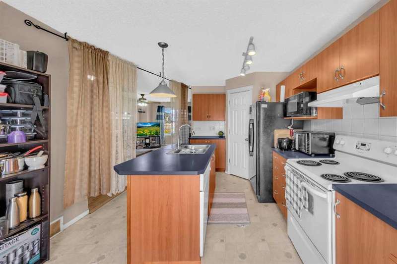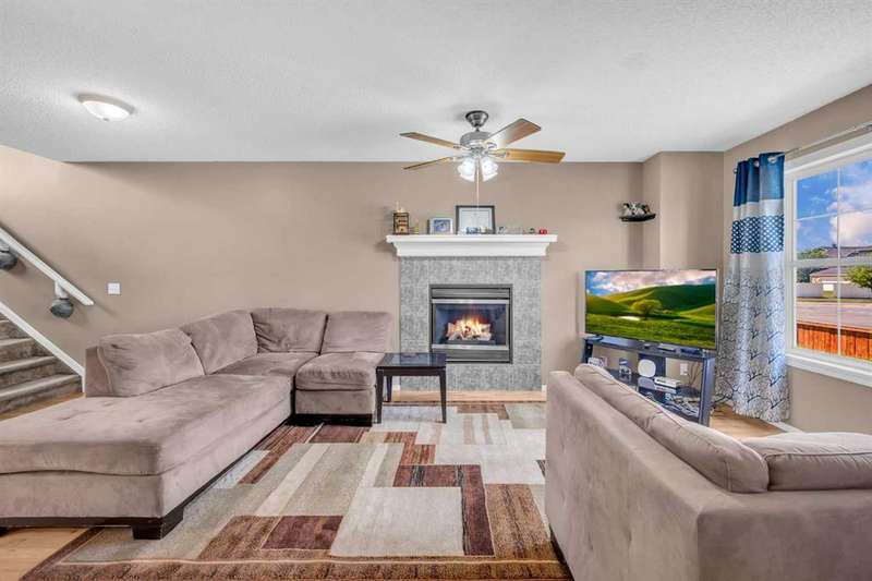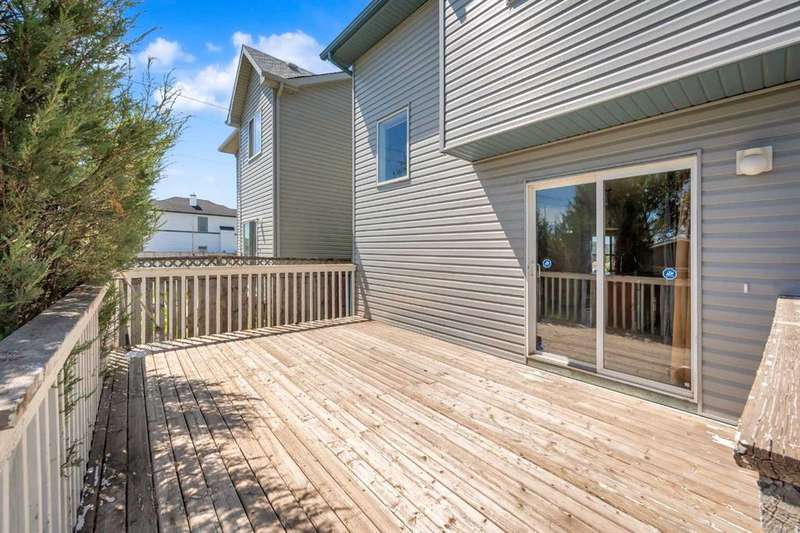 Welcome to this bright and open 3-bedroom, 1.5-bath home, perfect for first-time buyers or anyone looking for great value. The main floor offers a cozy living area with a corner gas fireplace, perfect for relaxing on cooler evenings. The kitchen is bright and functional, featuring a centre island with space for meal prep and casual dining. Upstairs, you'll find three comfortable bedrooms and a full bathroom, making it an ideal layout for small families. The home also includes a convenient half bath on the main level. Notable updates include a new hot water tank installed in 2024. The front bedroom window was replaced in 2025, and the main level window was updated in 2020, contributing to improved comfort and energy efficiency. The siding and roof were also replaced in 2025, offering peace of mind and added curb appeal. Step outside and enjoy a very large deck, perfect for outdoor gatherings or simply soaking up the sun. The fully fenced and landscaped backyard offers a private and secure area for kids, pets, or gardening. Rear parking for two vehicles adds even more convenience. Located in a quiet neighbourhood with a school just steps away, this home is also close to a nearby train station, multiple grocery stores, and everyday amenities. This is truly a great place to call home. It shows well and is ready for you to move in!