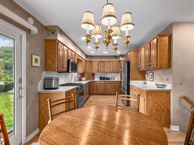 Welcome to this beautifully designed home offering comfort, functionality, and thoughtful features throughout. The spacious kitchen includes a cozy breakfast area, dedicated water heater, and a pantry with washer and dryer hookups. A formal dining room is perfect for entertaining, while the screened porch and open deck expand your living space outdoors. The main level features a primary suite with walk-in closet and two additional bedrooms. The inviting living room includes a fireplace, and the lower-level family room offers a gas fireplace for added comfort. The level yard is ideal for gardening, play, or outdoor projects. Additional highlights include a laundry room with sink, two-car garage on the main level, LED lighting throughout, abundant storage, and a workshop for hobbies or extra space. A generator powers most of the home during outages, offering peace of mind. This home blends practicality with comfort in every detail.